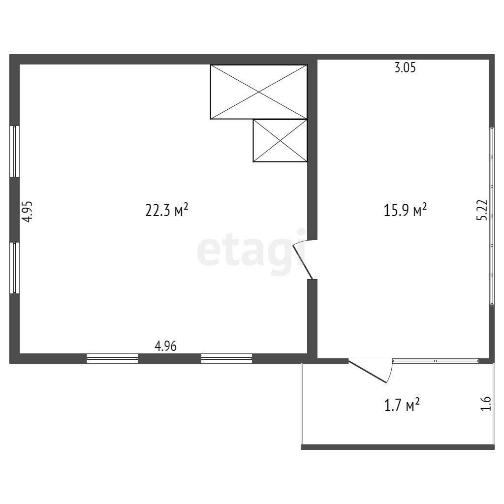 Деревянный дом 1991 года постройки Общая площадь – 39,9 м2 Жилая комната с печкой – 22,3 м2 Просторная летняя кухня – 15,9 м2 Деревянные полы, стены оклеены обоями Возможность обустроить второй этаж Коммуникации: