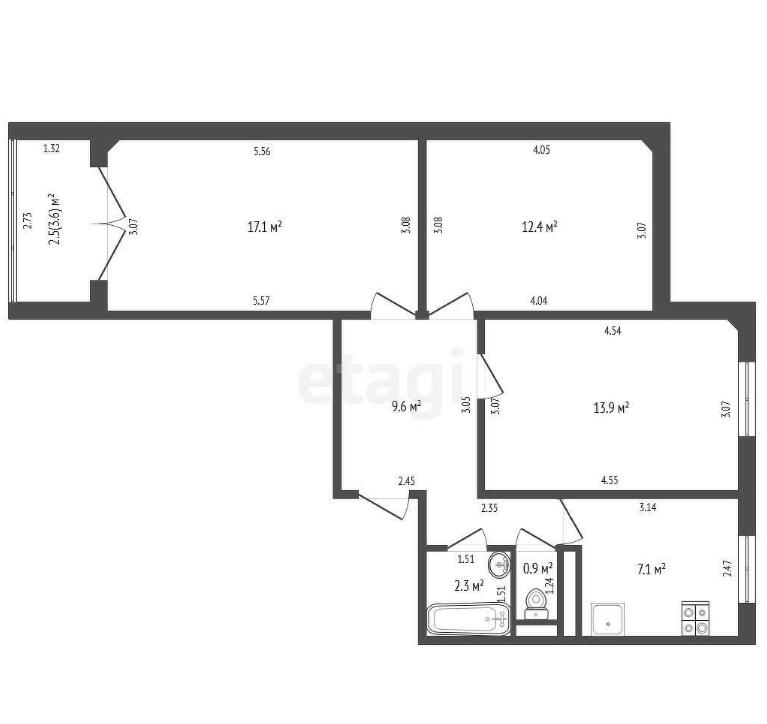 Площадь указана по СНБ.
