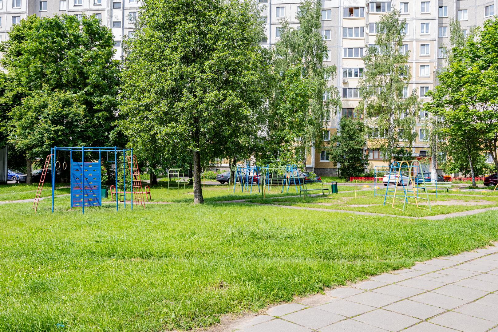 Район отличается удобной транспортной доступностью: станция метро находится в 7 минутах, выезд на МКАД занимает несколько минут, что позволяет быстро добраться до любой точки города без пробок. В шаговой доступности — магазины, кафе, детские сады, школы и парк, что делает локацию привлекательной для семей с детьми. Во дворе достаточно места для парковки, территория благоустроена и озеленена.