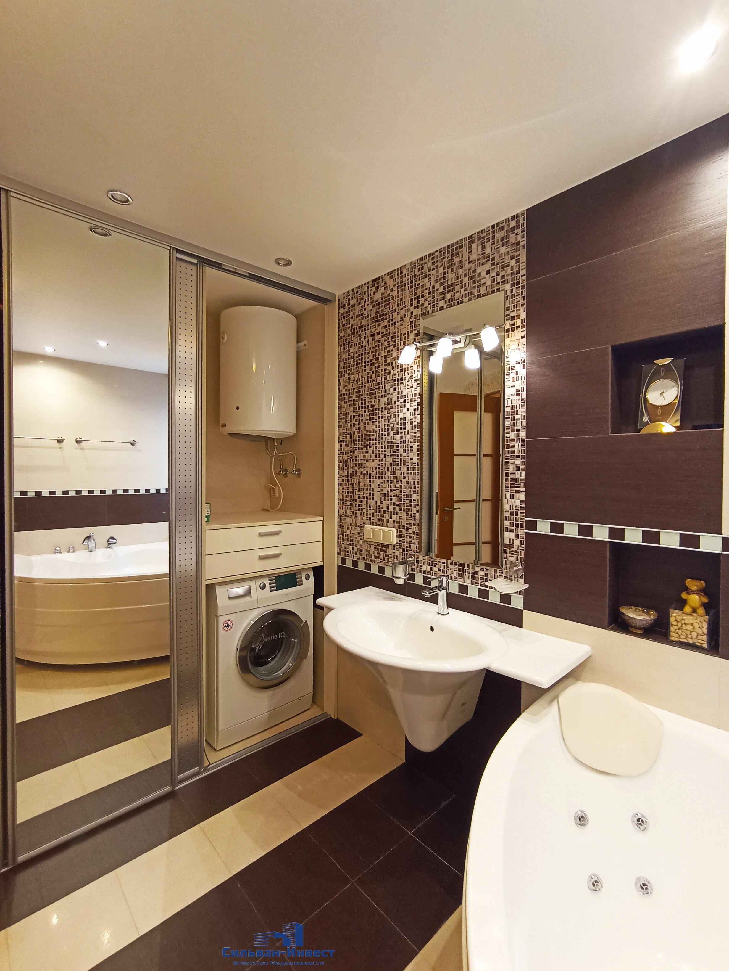 Изначальный дизайн-проект квартиры  был реализован и согласован уже в момент постройки дома. Просторная гостиная с кухней и столовой зоной, обособленная зона спален, два больших сан. узла, один из которых имеет прямой выход в мастер-спальню.  Ремонт  в квартире  выполнен с использованием качественных импортных материалов. Установлена система центральной приточно-вытяжной вентиляции с рекуперацией (Швеция), кондиционер с инвертором Daikin,  двухкамерные стеклопакеты (красное дерево), два бойлера, в кухне и санузле, система очистки воды с обратным осмосом. Пол – новая паркетная доска (брашированный дуб), плитка произодства Италия с зонированным подогревом.   Кухня с барной стойкой  оснащена техникой MieleI (варочная панель, духовой шкаф, посудомоечная машина), измельчителем отходов, холодильником Samsung Side-by-side со льдогенератором. В одном из санузлов расположена гидромассажная ванна, стиральная машина Siemens, объемная зона хранения, во втором  душевая кабина. Квартира полностью меблирована (мебель и свет производства Италия),  оборудована достаточным количеством мест хранения. Установлена сигнализация и домофон.