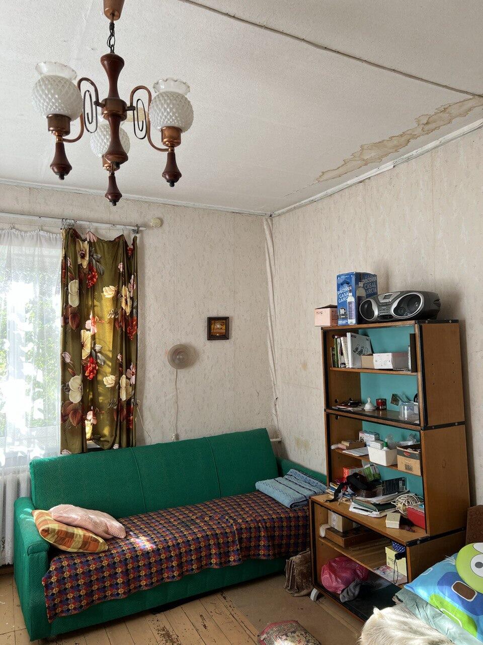 - Окна — новые стеклопакеты, пол — плитка и доска
