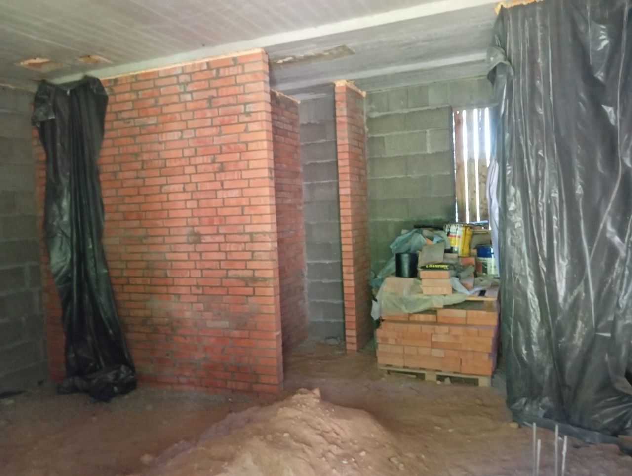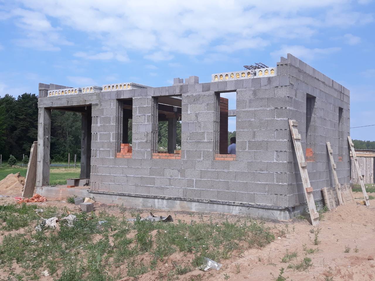 Стены из керамзитобетонных блоков и монолитного железо-бетона. Фундамент столбчатый с монолитной железобетонной рандбалкой. Крыша – плиты перекрытия. Перегородки – кирпич.