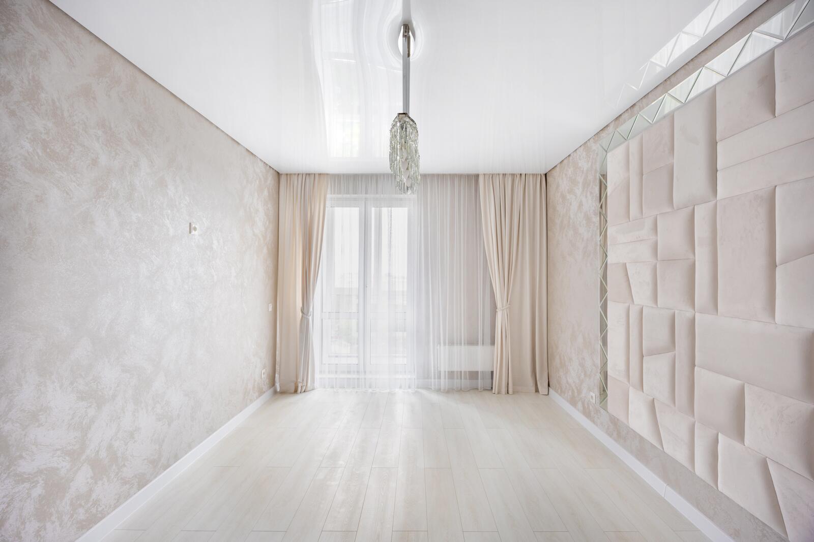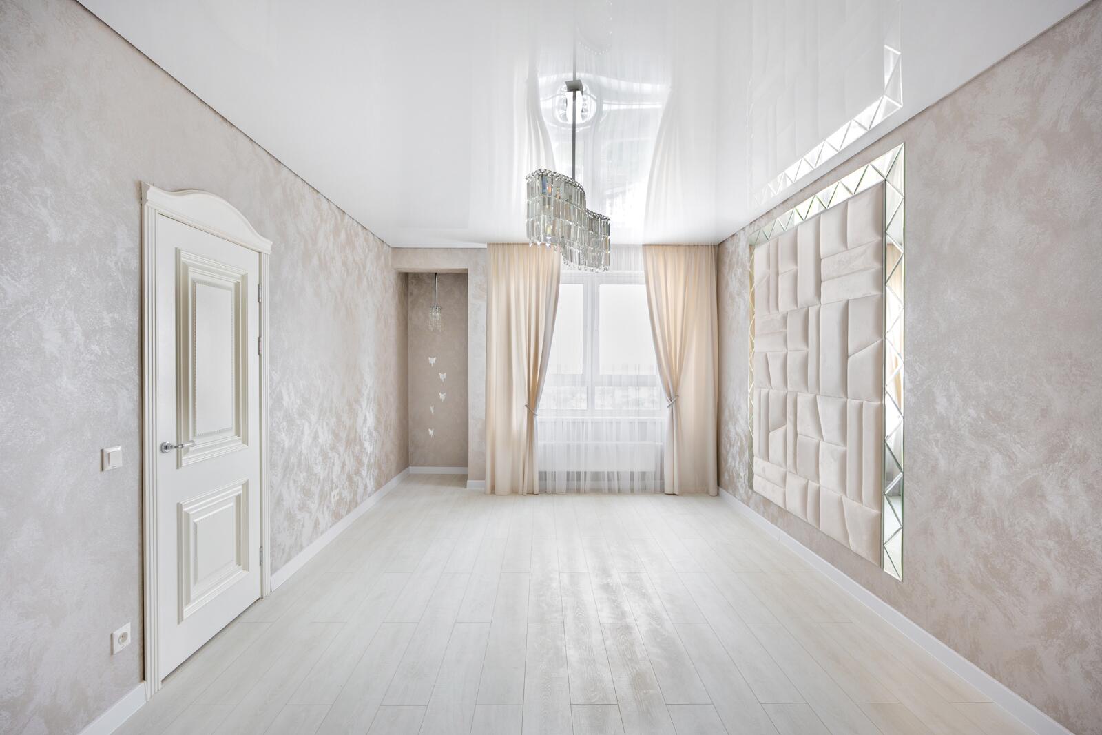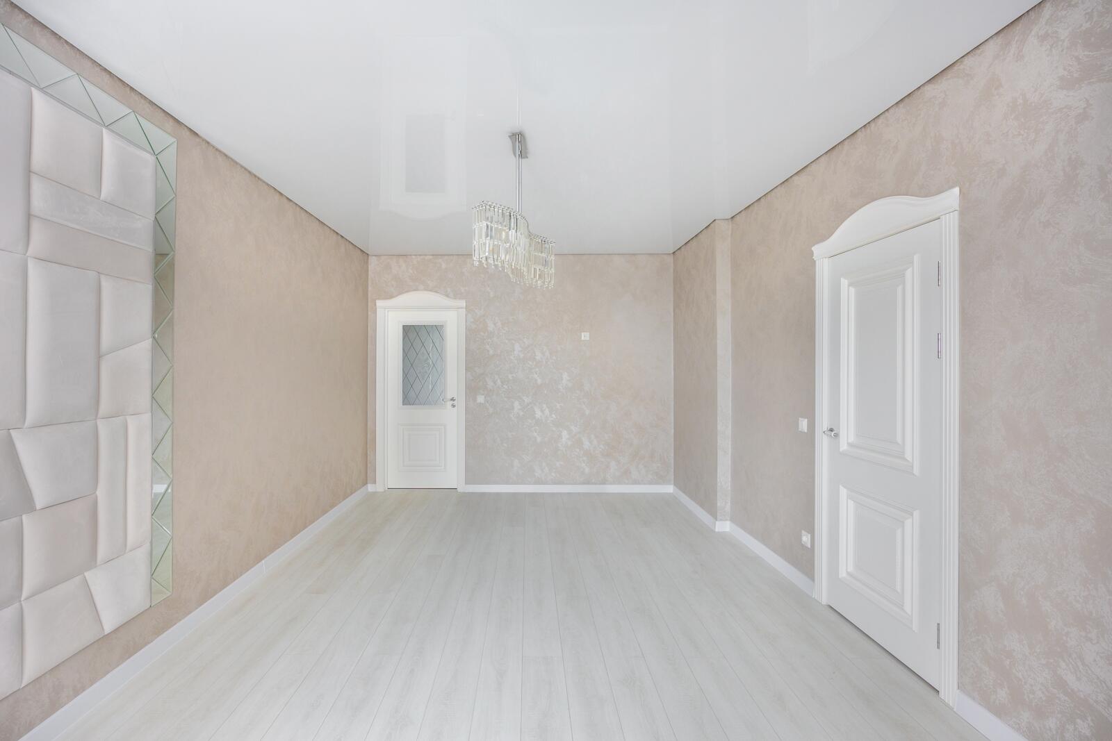 Выполнен качественный ремонт с применением высококачественных отделочных материалов. Парящие натяжные потолки с подсветкой в комбинации с классическим светом. Предусмотрена отдельная подсветка штор. Напольное покрытие: ламинат, кафельная плитка. Подключена система "теплый пол". Стеклопакеты с профилем из ПВХ, французское остекление лоджий из которых можно наслаждаться видом на город с высоты птичьего полёта. На стенах итальянские обои Carrara. В гостиной зоне установлены декоративные колонны из полиуретана, а также панно из керамогранита. Межкомнатные двери из массива, входная металлическая. В санузлах итальянская плитка. Установлены унитаз, ванна, мебель для ванной комнаты, сантехническая посуда и оборудование от ведущих профильных производителей, некоторая мебель выполнена на заказ. Установлены современные радиаторы отопления, приборы учета воды, электро- и теплосчетчики, оптоволоконная связь.