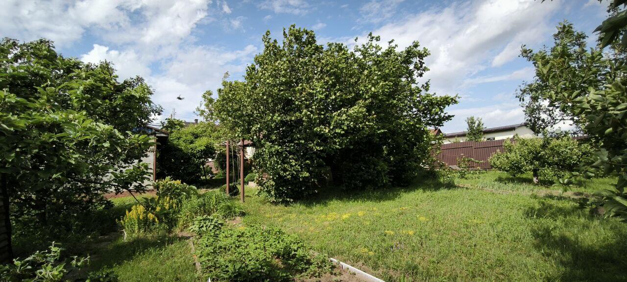 Участок 15 соток, утопает в зелени – плодовые деревья, туи, множество цветов - правильной прямоугольной формы, огорожен. В конце участка – выход в поле, отдельная калитка, потрясающий живописный вид.