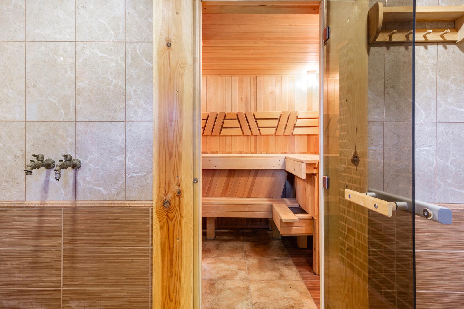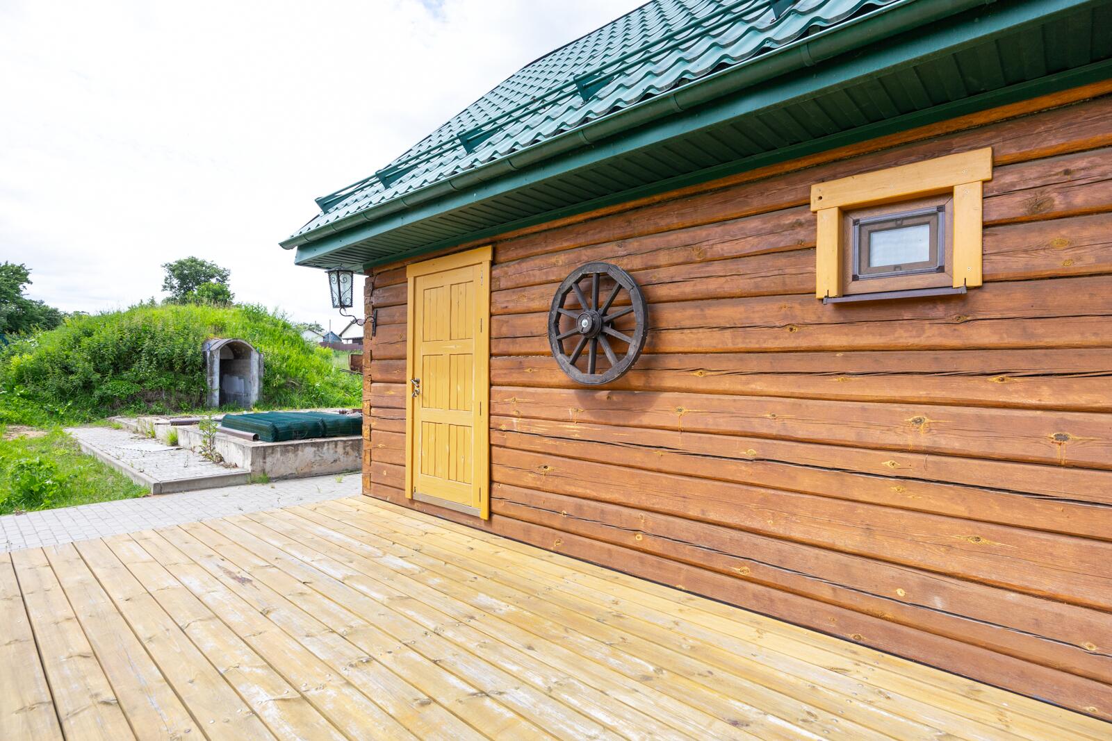 2. Отдельно стоящая баня– Натуральные материалы в отделке: лиственница, ольха, полки из липы– Аутентичная мебель и посуда