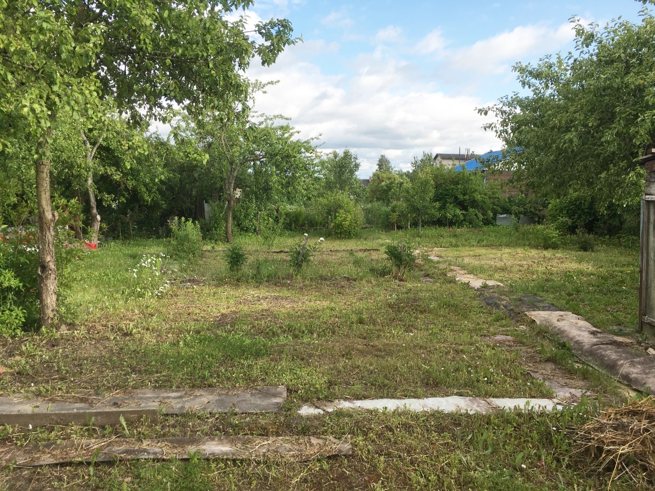 Участок ровный площадью 9.29 сотки, оформлен в частную собственность. Есть беседка (летняя кухня), смотровая яма, дровник. Плодородная земля, прекрасный сад (смородина, малина, сливы, редкие сорта яблонь).