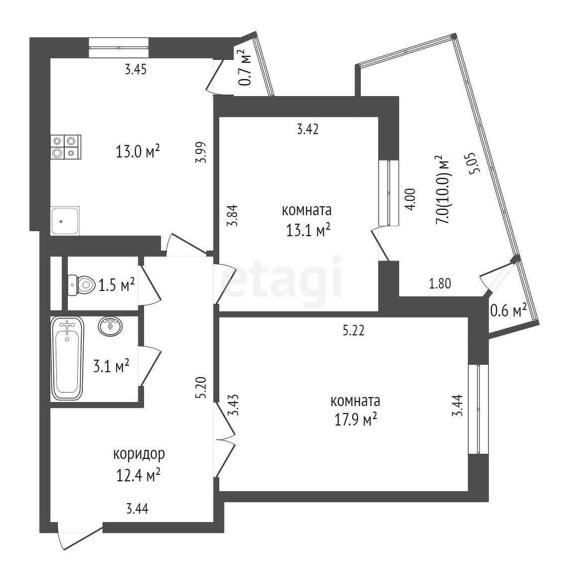 Просторная кухня площадью 13 м2 станет настоящим сердцем вашего дома, а большой балкон позволит вам наслаждаться утренним кофе или вечерним чаем с великолепным видом на город.