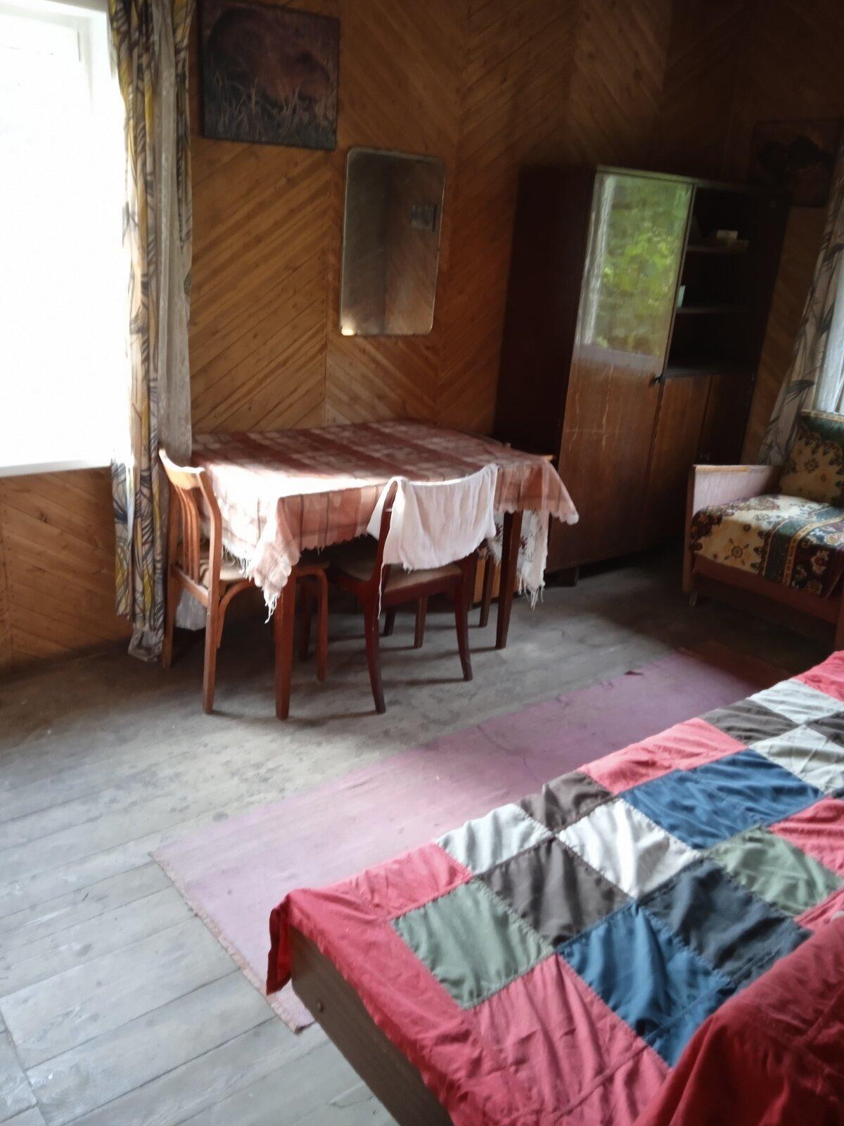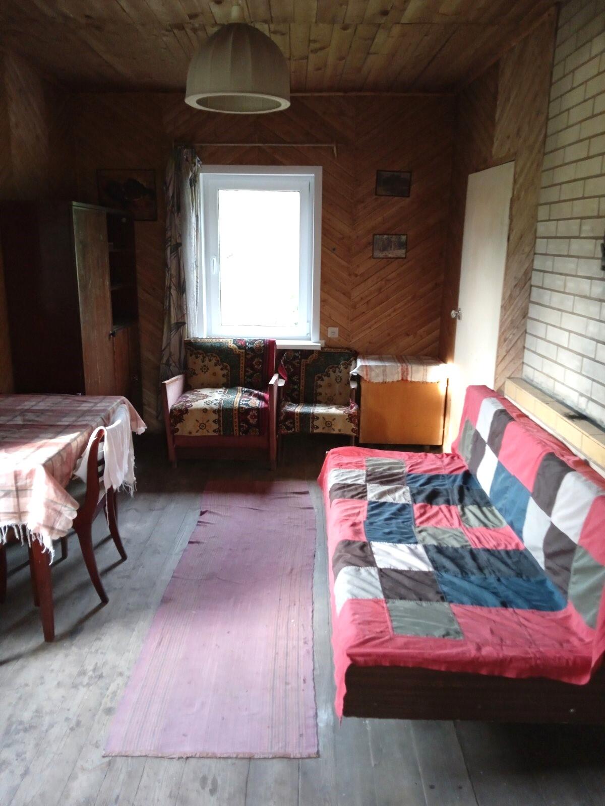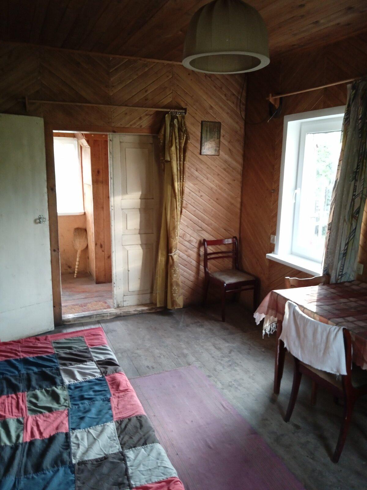 Дом из сруба , внутри обшит вагонкой. На первом этаже веранда и три жилые комнаты. На втором этаже одна жилая комната.
