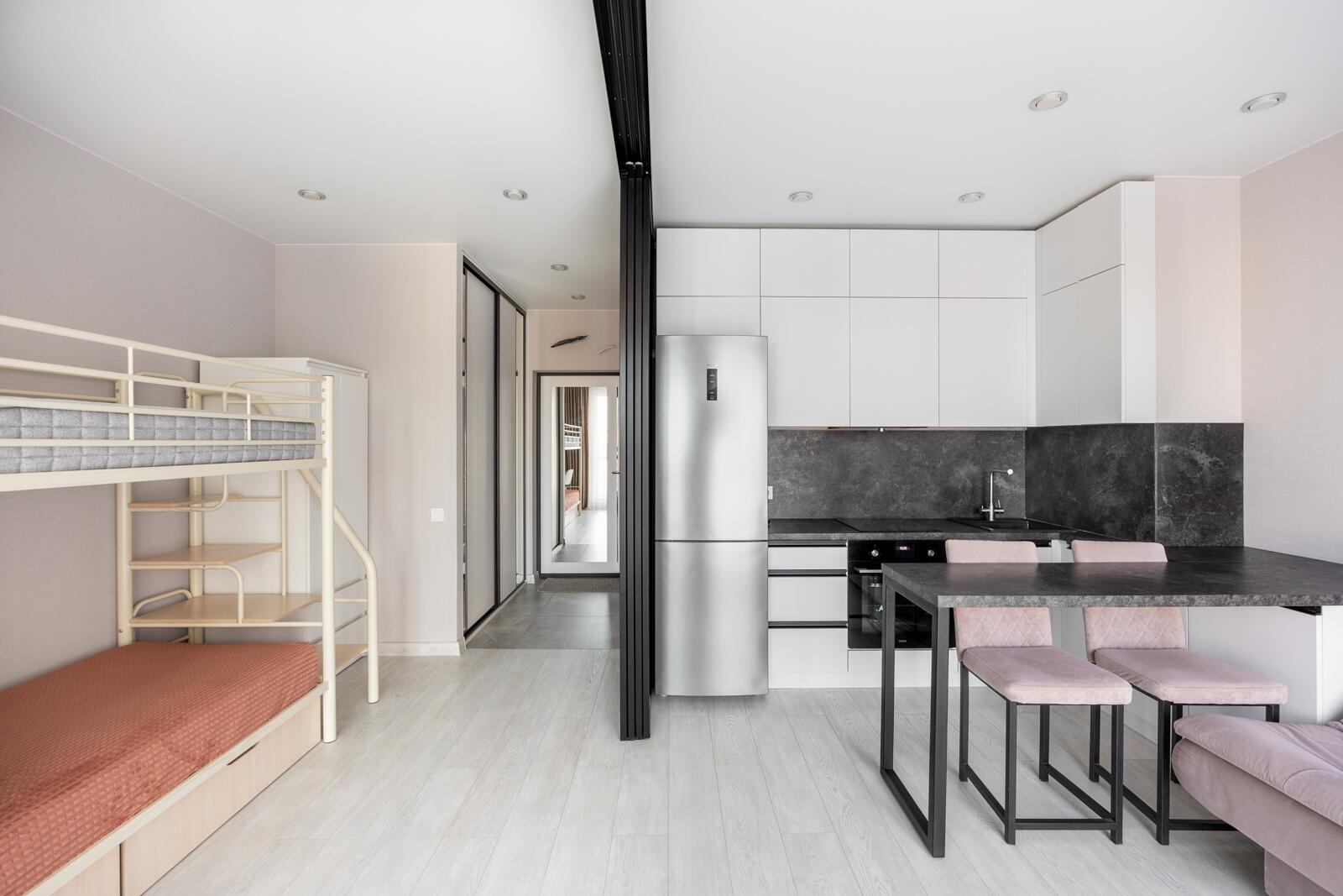 – Благодаря большим окнам и удачному расположению квартира наполнена естественным светом, создавая ощущение простора и уюта.– Пространство организовано максимально рационально: предусмотрены отдельные зоны для сна, отдыха, работы и приготовления пищи — каждый квадратный метр работает на комфорт.– Выполнен качественный современный ремонт: свежие отделочные материалы, нейтральная цветовая гамма — квартира готова к заселению без дополнительных вложений.– В прихожей обустроена полноценная гардеробная комната — удобно для хранения одежды, обуви и бытовых мелочей.– Гибкий функционал: планировка легко адаптируется под ваши задачи и стиль жизни. В квартире установлена двухуровневая детская кровать, которую при необходимости можно демонтировать без потери пространства.– Отлично подойдёт как для собственного проживания, так и для сдачи в аренду.О районе: