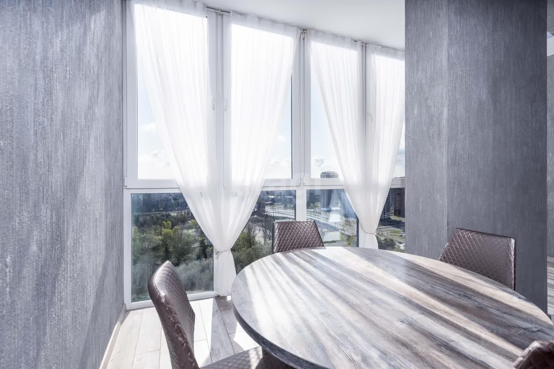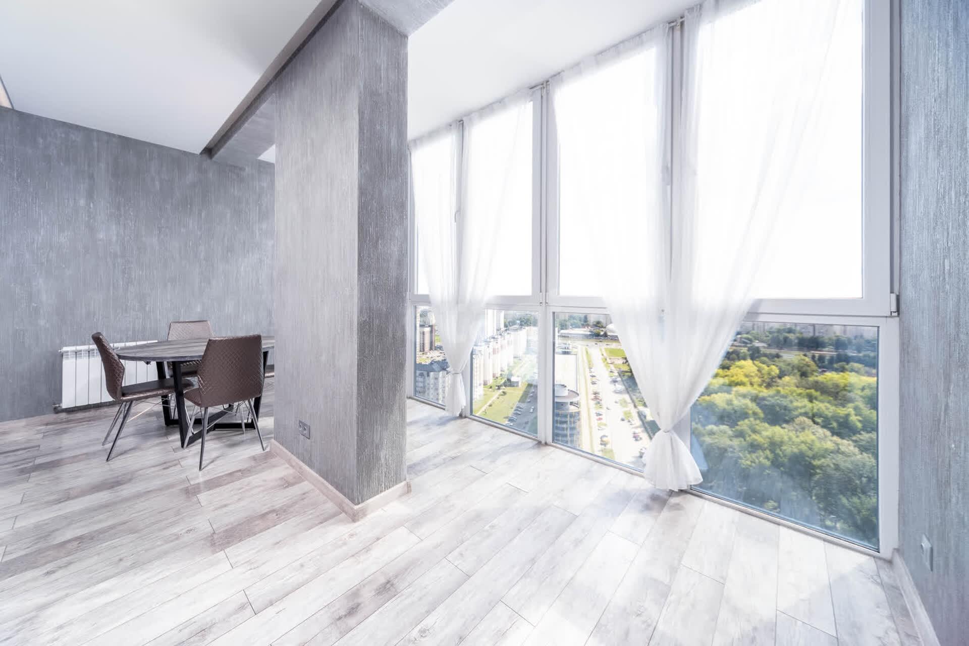 Французские окна в пол позволят вам любоваться потрясающими рассветами и закатами с высоты птичьего полета.