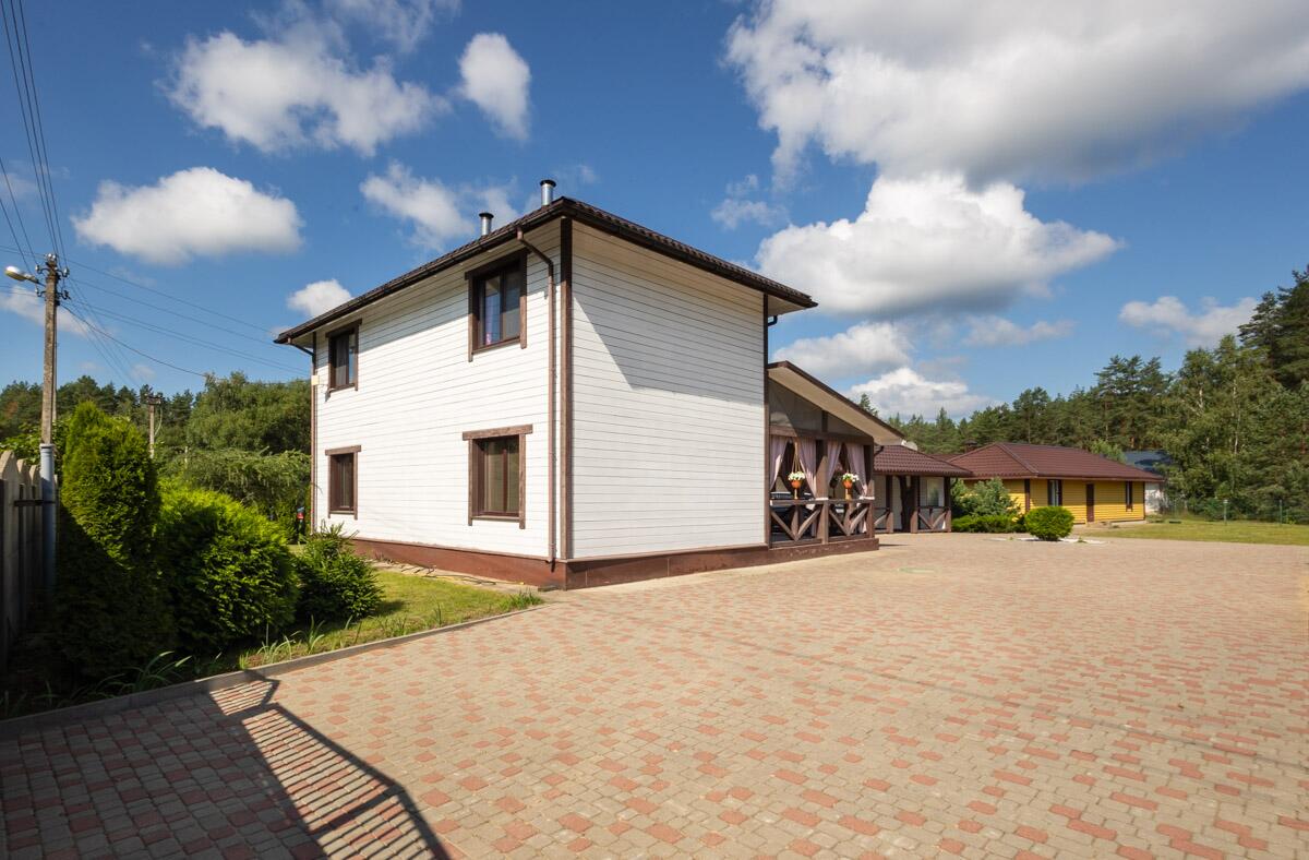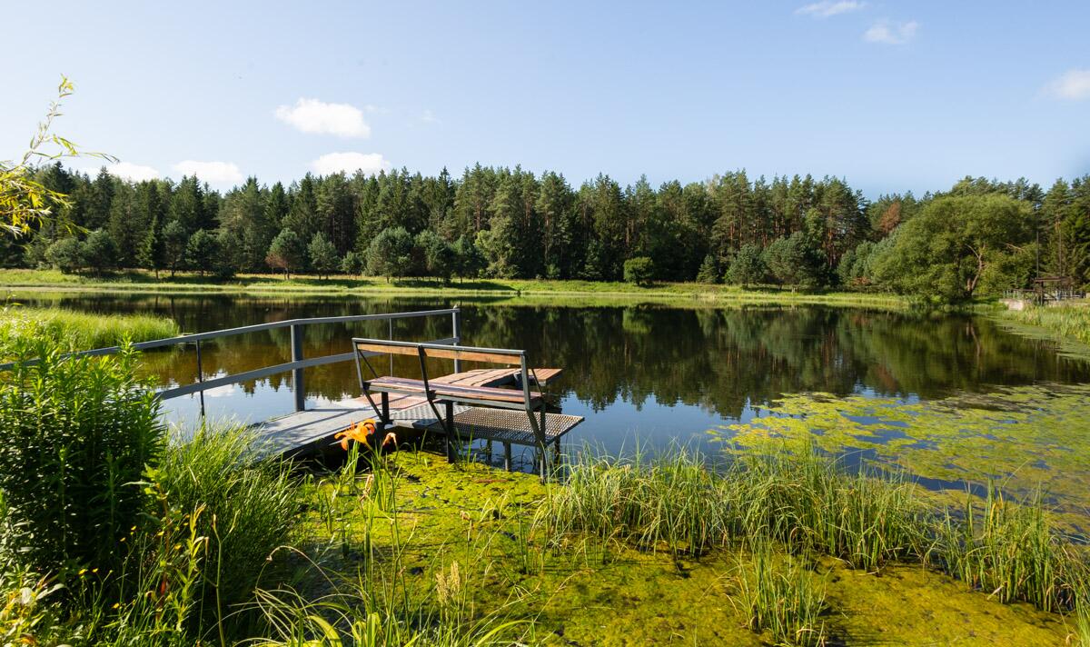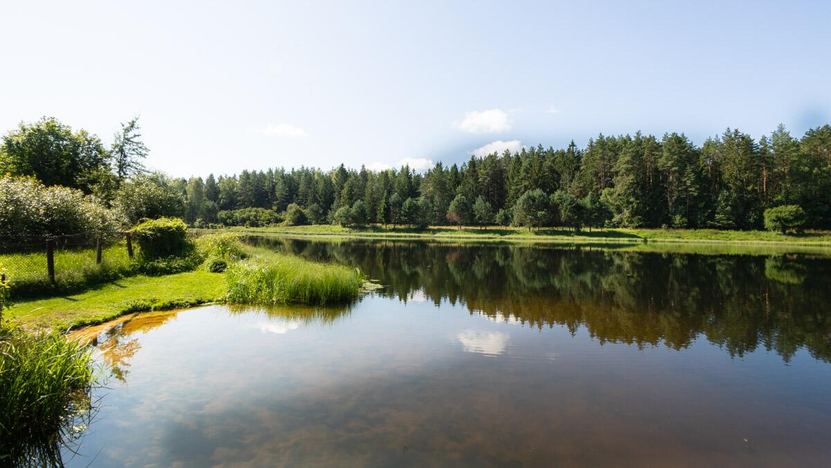 · Дома у озера, окружёны сосновым лесом