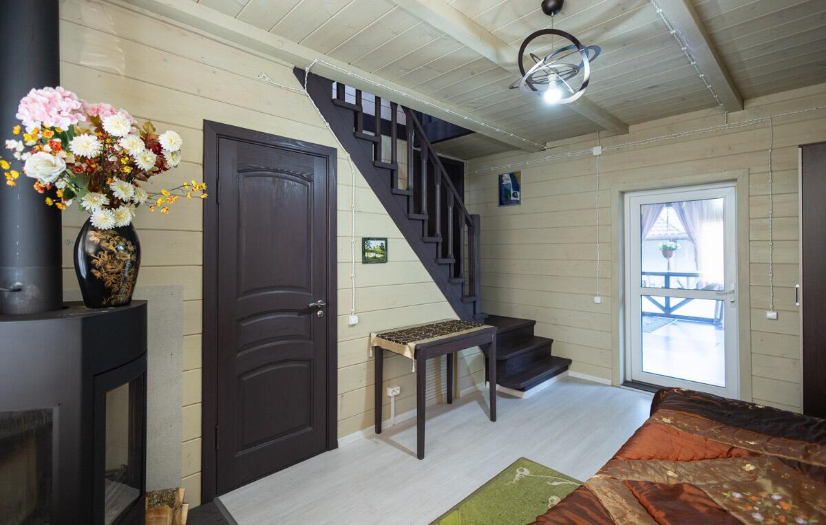 · Внутри отделка: имитация бруса, создающая уютную атмосферу.