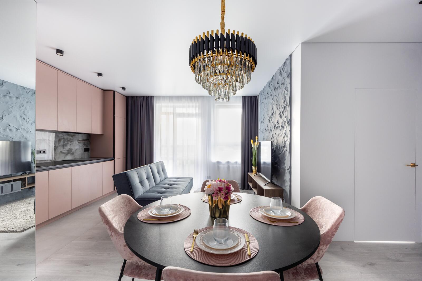 Ремонт яркий, эмоциональный, с характером. Он не только красиво смотрится в кадре, но и прекрасно продуман — каждый элемент на своём месте. Продуманная планировка, много скрытых систем хранения, грамотная электрика и выверенные детали. Использованы только качественные материалы, вся техника — проверенных брендов.