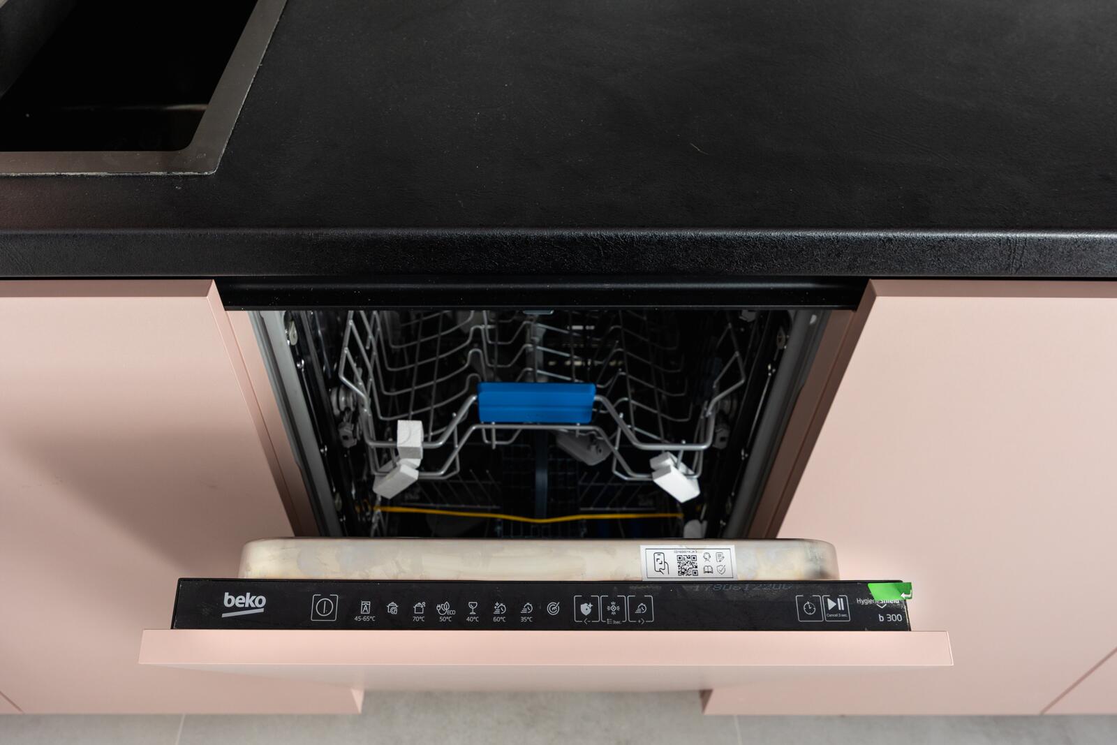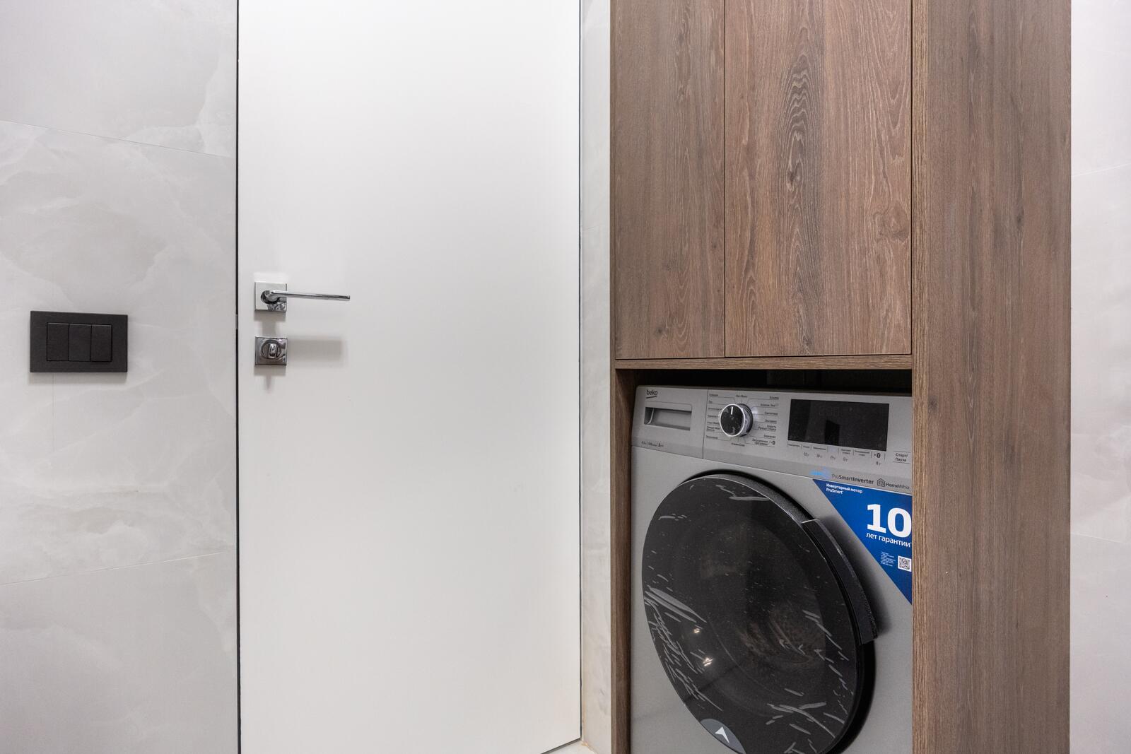 Кухня и гостиная объединены в общее пространство — удобно, современно, светло. Встроенная техника, посудомойка, холодильник, плита, духовой шкаф. Всё остаётся.