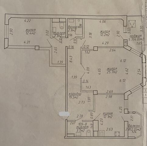 Площадь по СНБ 96.6 м.кв., жилая 50.3 м.кв., большая кухня 12.1 м.кв с выходом на балкон.
