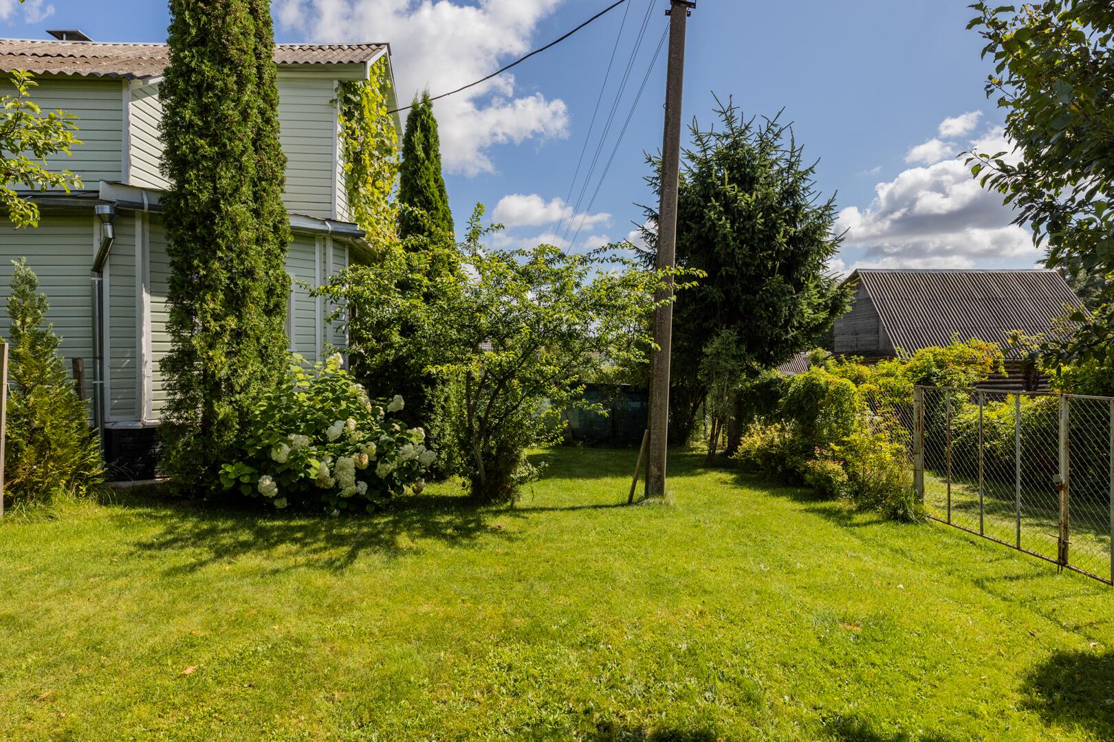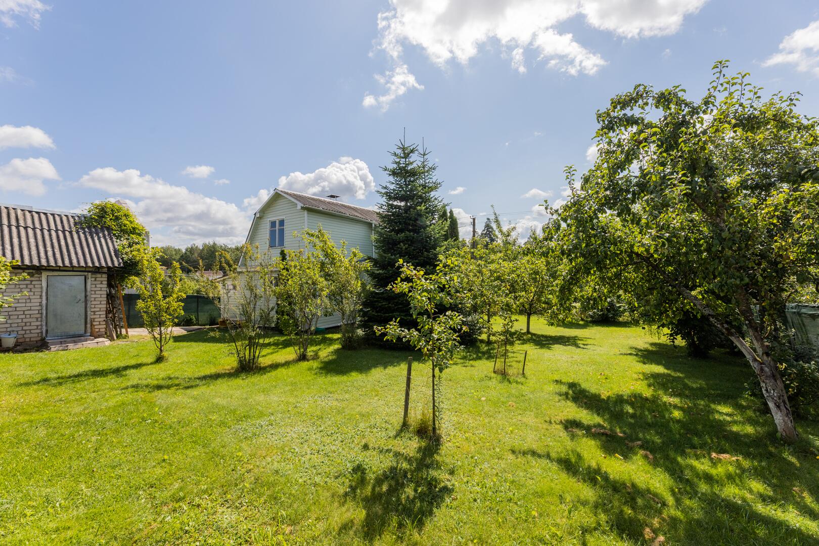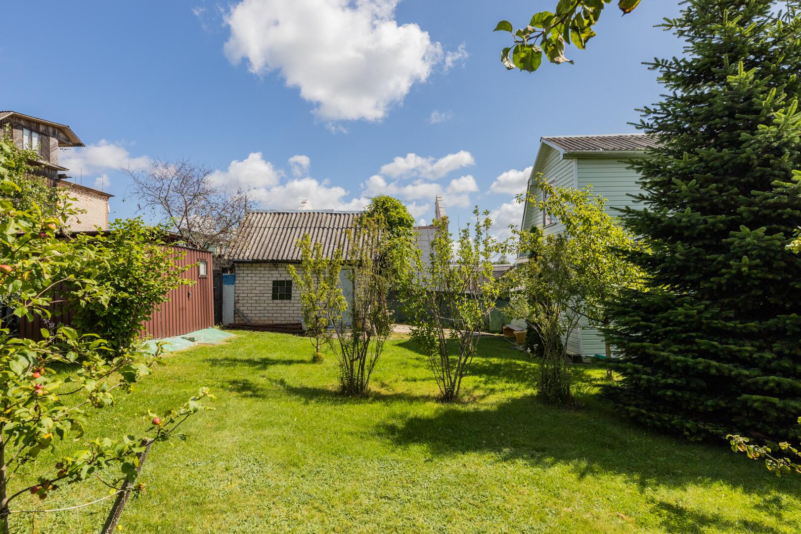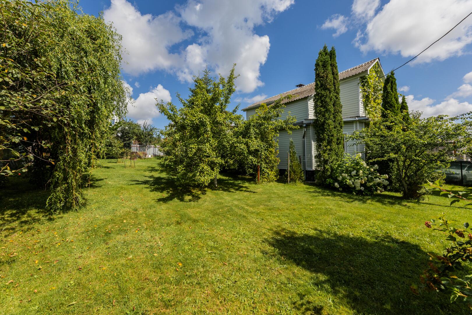 Природа: на ухоженном участке (5.23 сотки) расположены разнообразные деревья и кустарники — туи, можжевельник, орешник, яблони, сливы, вишня, виноград (зеленый и синий) и смородина создадут свежий и природный ландшафт.. Газон исключительный. Зона отдыха и барбекю оборудована. Территория огорожена сеткой рабицой, обтянута защитной сеткой зеленого цвета.