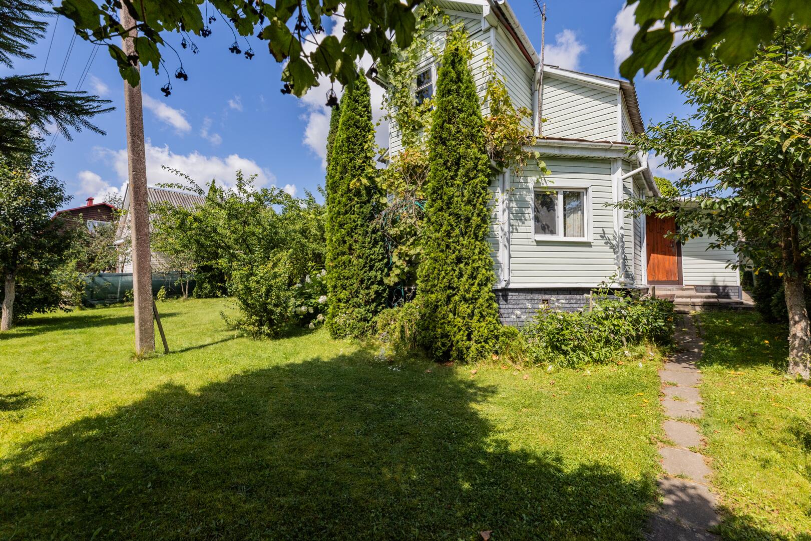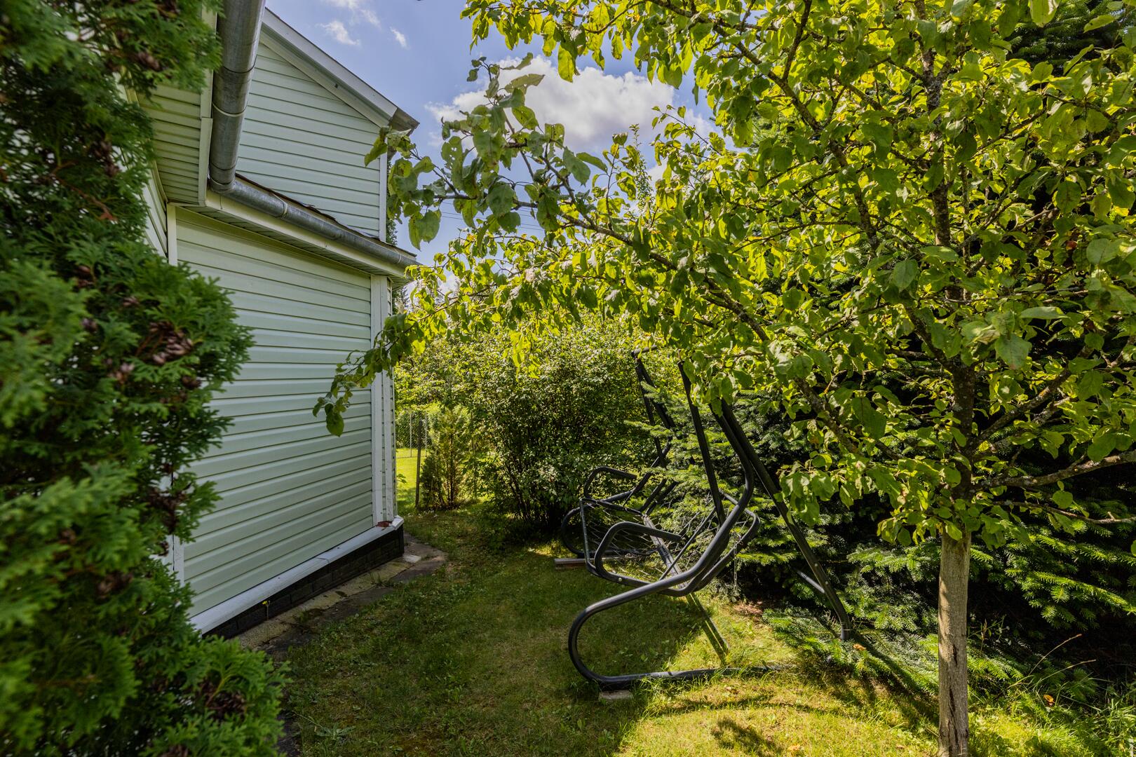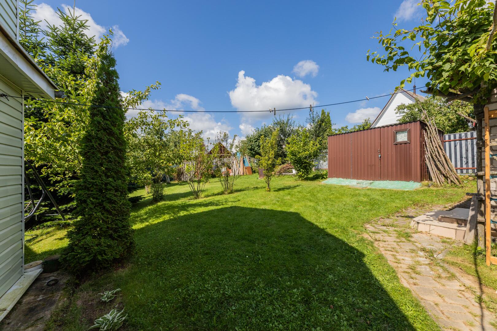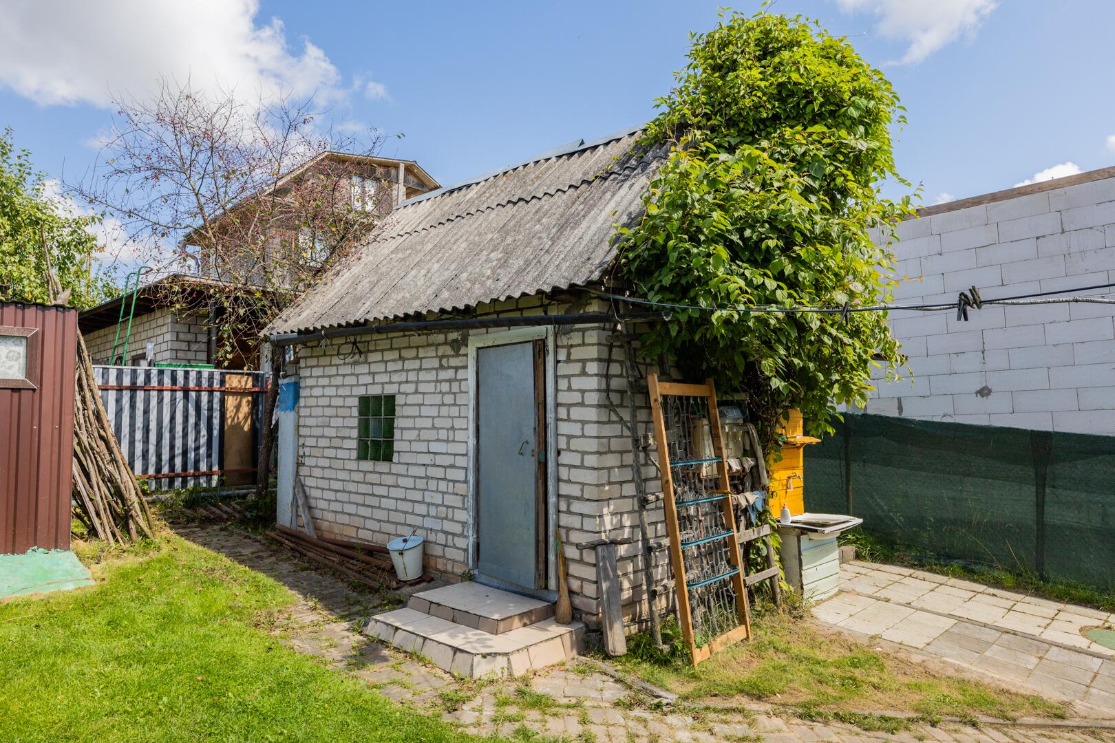 Природа: на ухоженном участке (5.23 сотки) расположены разнообразные деревья и кустарники — туи, можжевельник, орешник, яблони, сливы, вишня, виноград (зеленый и синий) и смородина создадут свежий и природный ландшафт.. Газон исключительный. Зона отдыха и барбекю оборудована. Территория огорожена сеткой рабицой, обтянута защитной сеткой зеленого цвета.