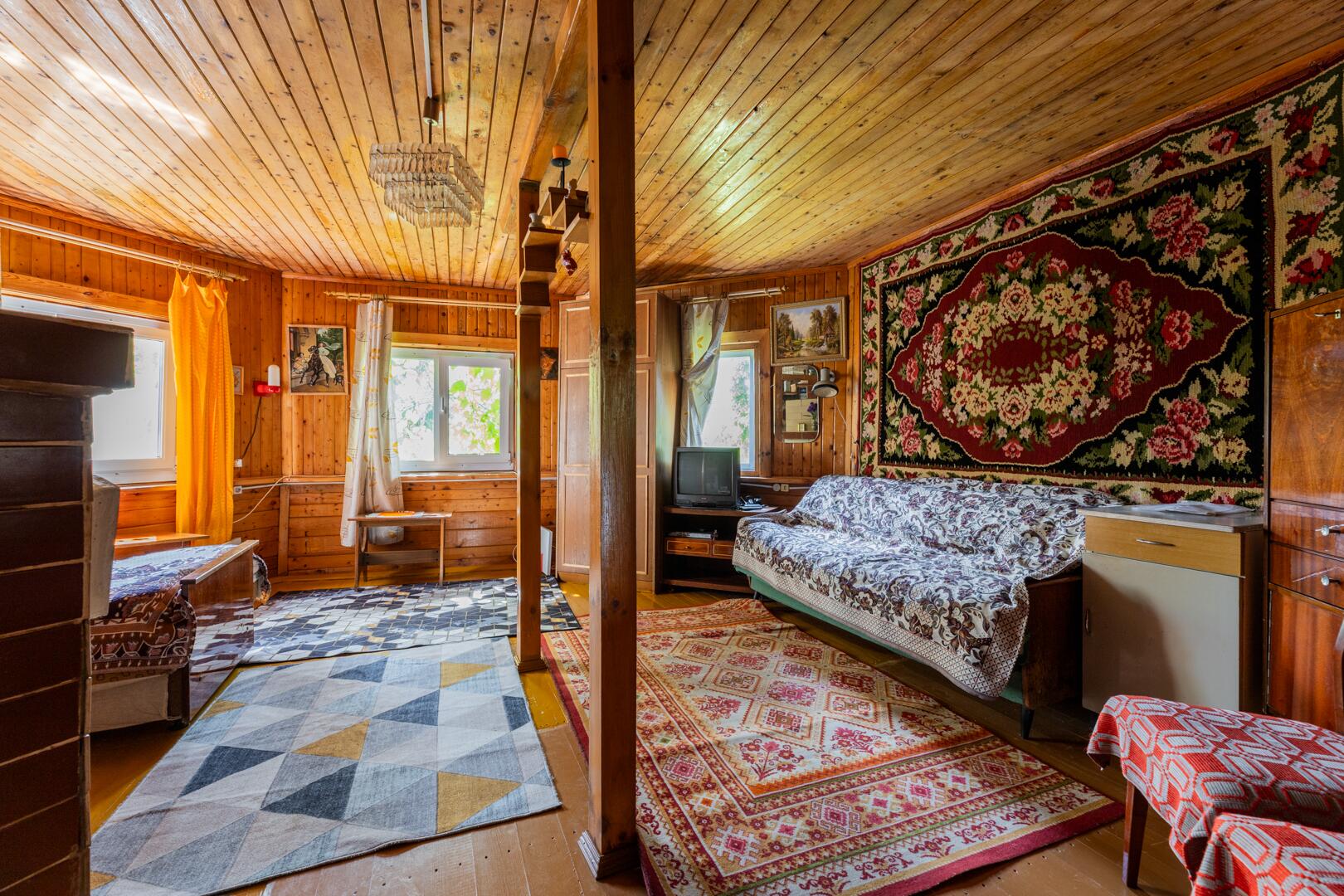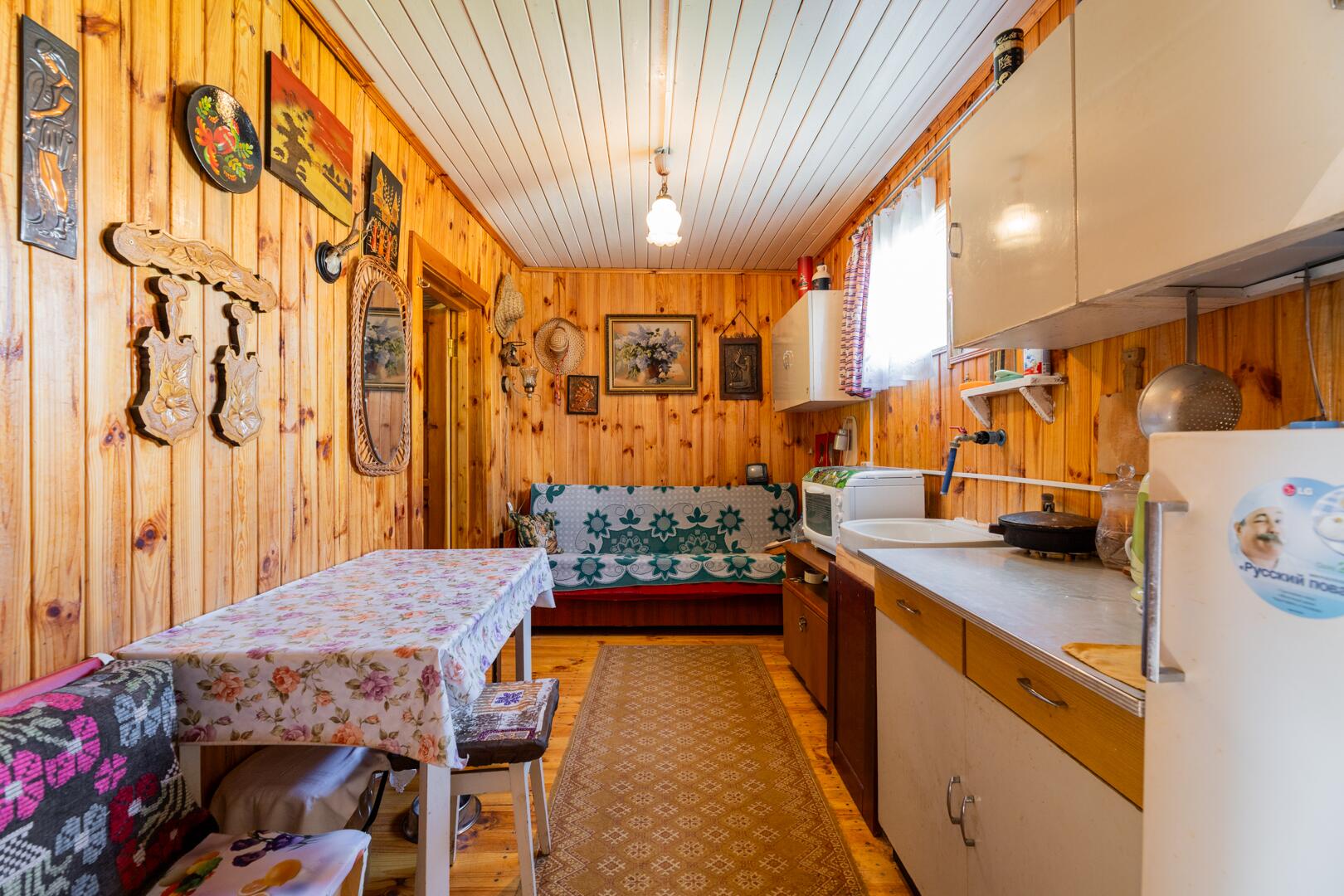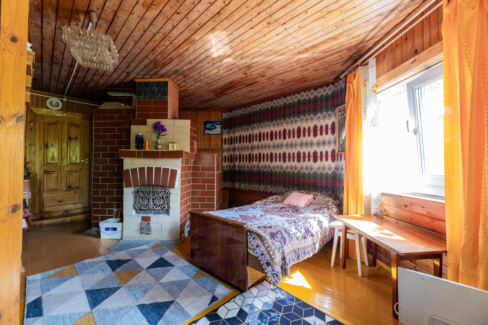 Дом: уютный деревянный (общ.пл.59,9 м2) обшит сайдингом, установлены окна ПВХ.. Отделка первого этажа полностью готова (36,3) кв.м., мансардный этаж (23,6 кв.м.) ждет дизайнерских идей нового владельца) Внутреннее оформление выполнено из натурального дерева. Эксклюзивный печной ансамбль состоит из камина, варочной поверхности, духовки и лежанки. Отопление – печное, вода – сезонная (возможность обустройства собственной скважины есть, глубина залегания около 50 метров). Канализационный колодец (ж.б кольца) есть. В него идет врезка от санузла и душевой в бане).