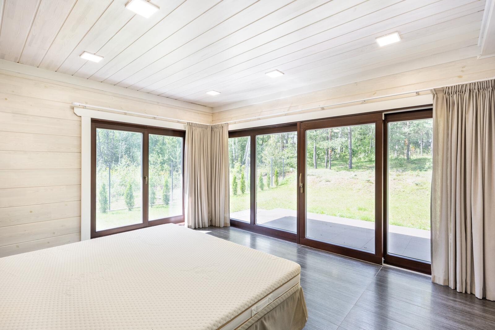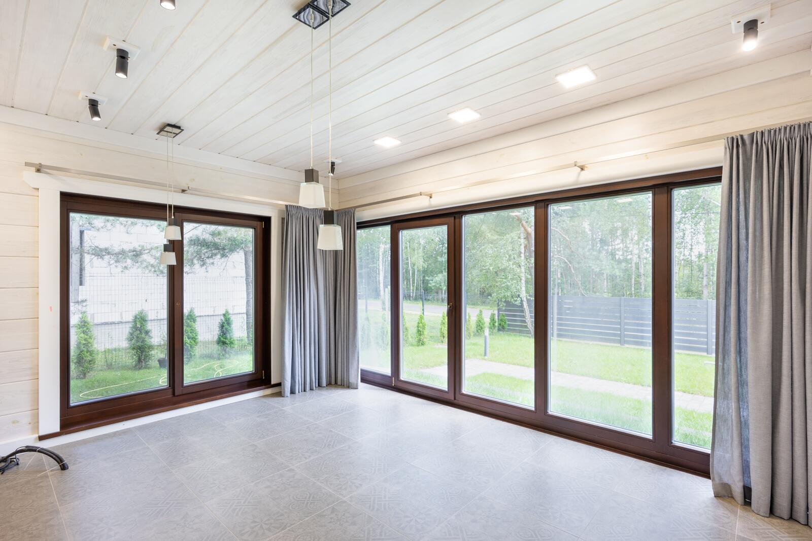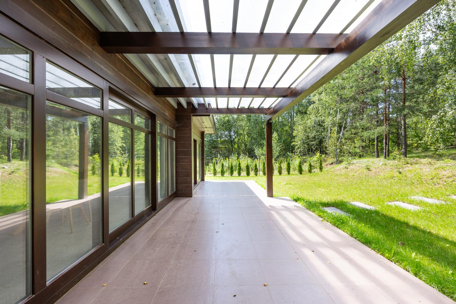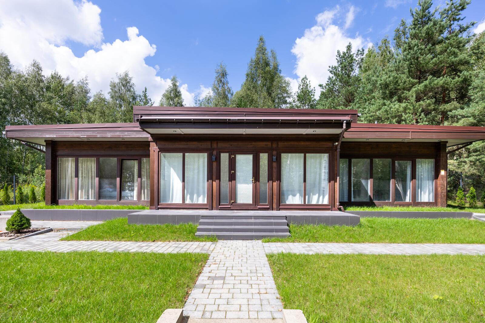 · Панорамные окна из лиственницы по всему дому, обеспечивающие максимум света и видов на природу