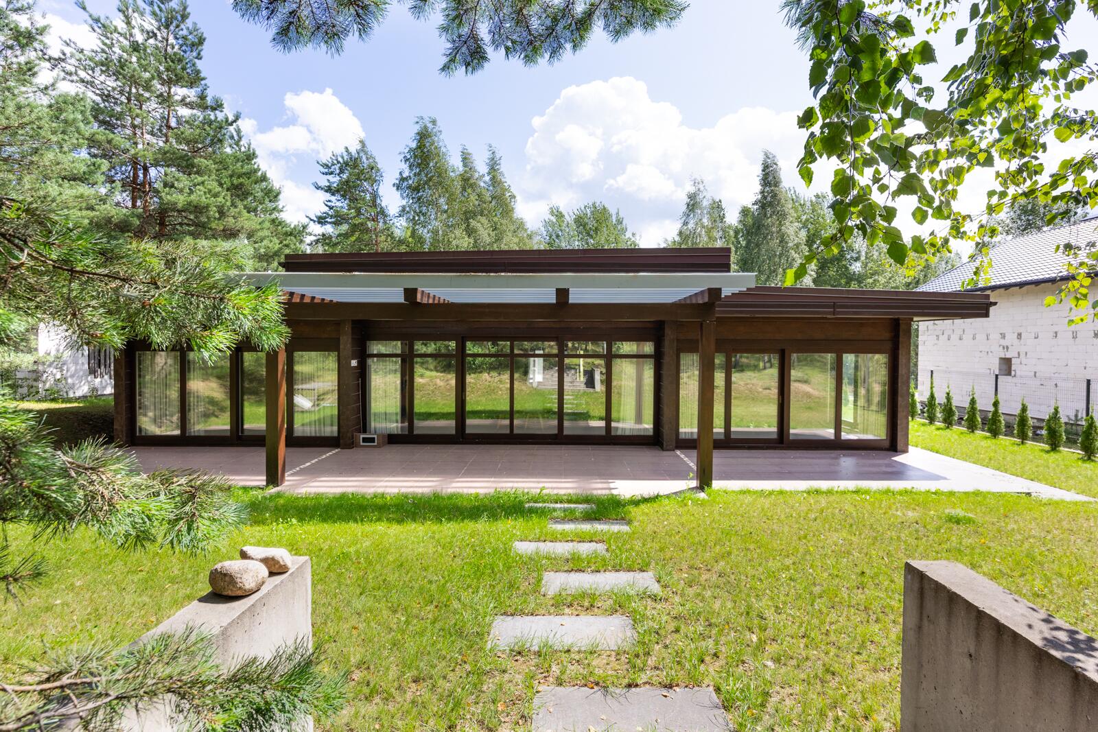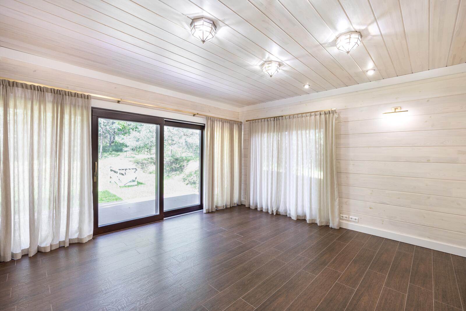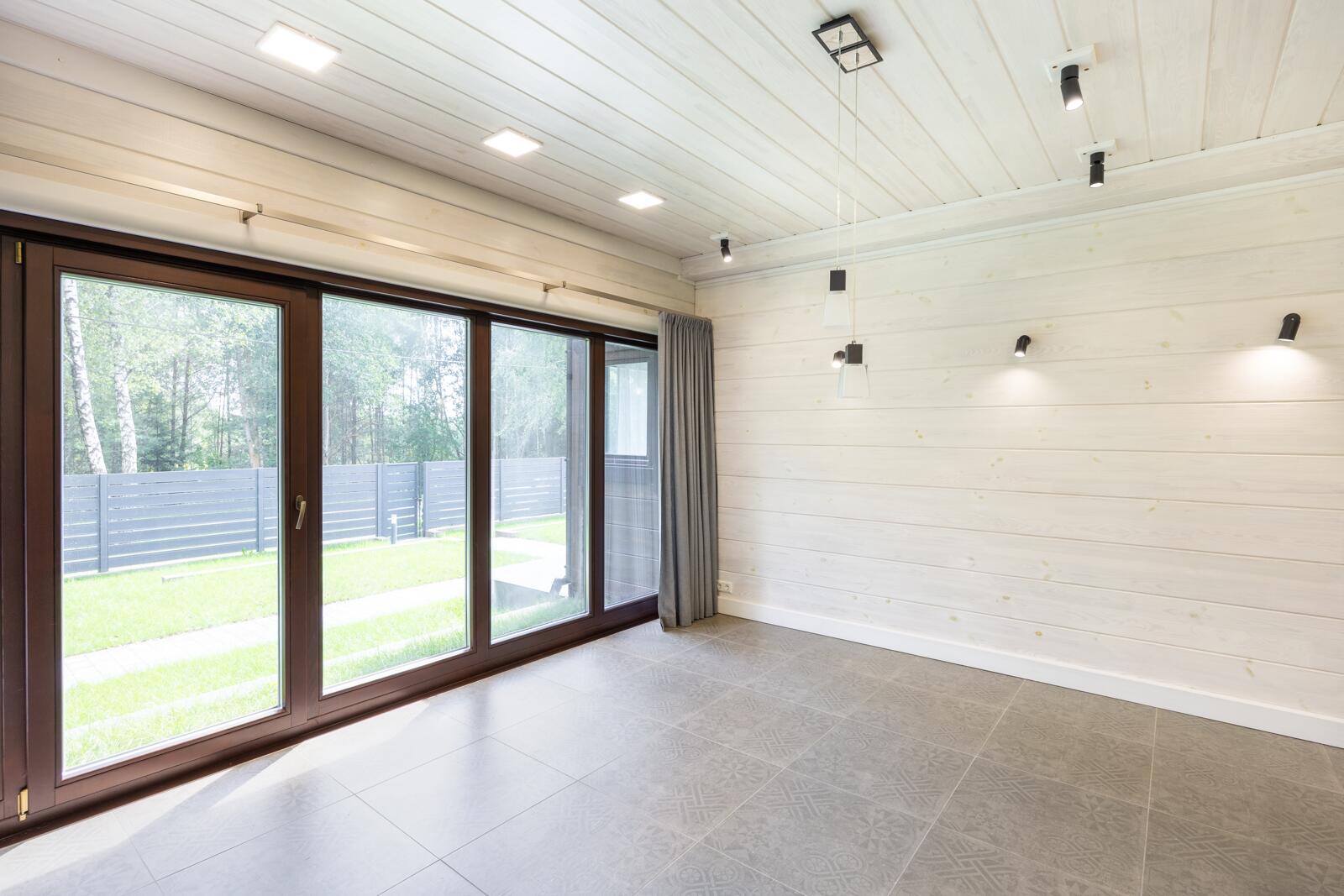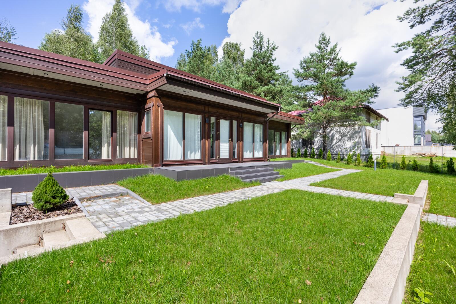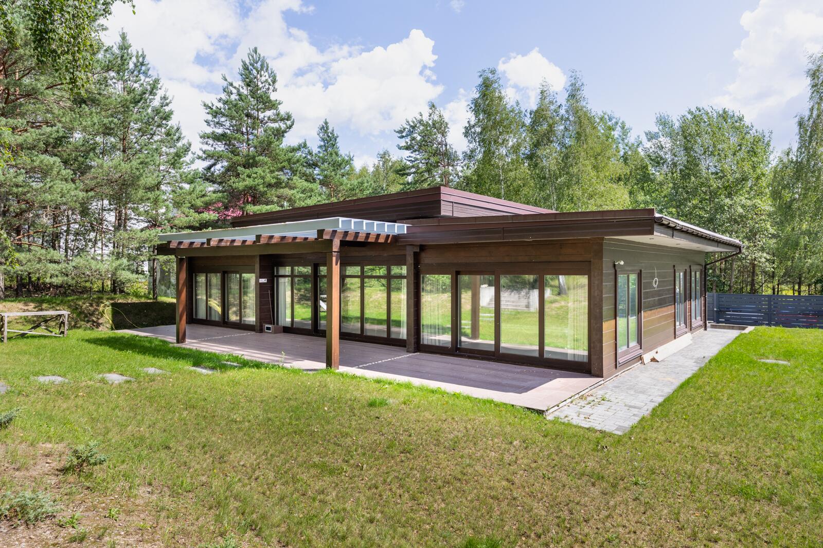 · Панорамные окна из лиственницы по всему дому, обеспечивающие максимум света и видов на природу
