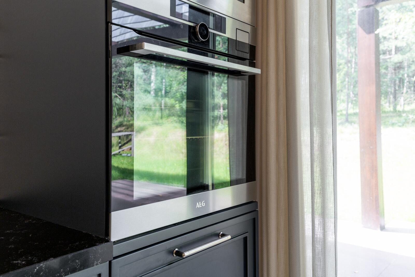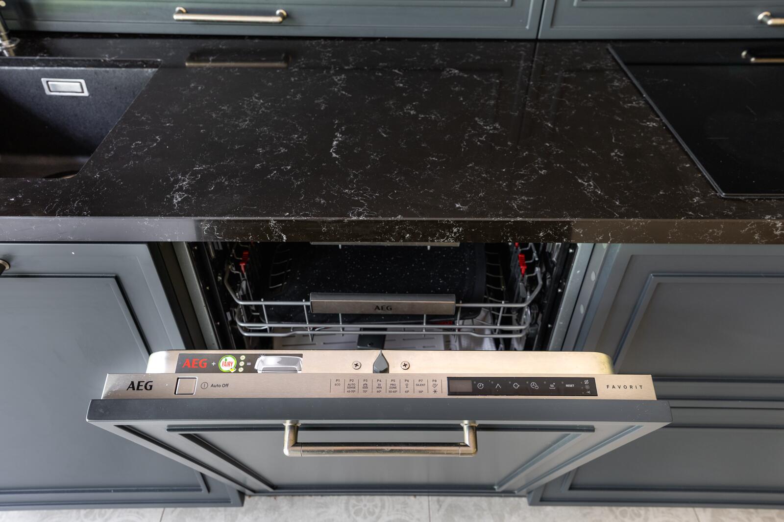 · AEG — духовой шкаф с режимом пара, посудомоечная машина, стирально-сушильная машина