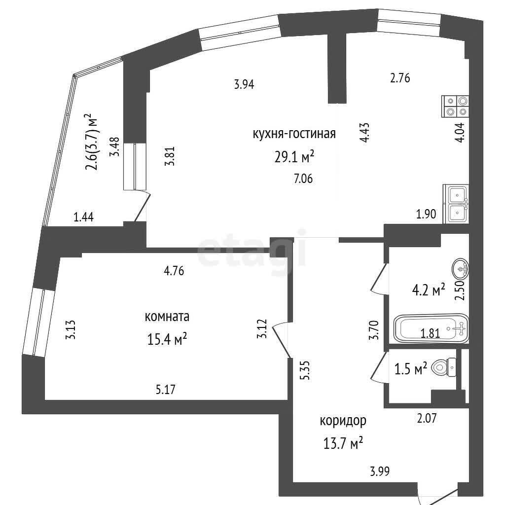 · Площадь СНБ — 66,5 м2, общая — 63,9 м2