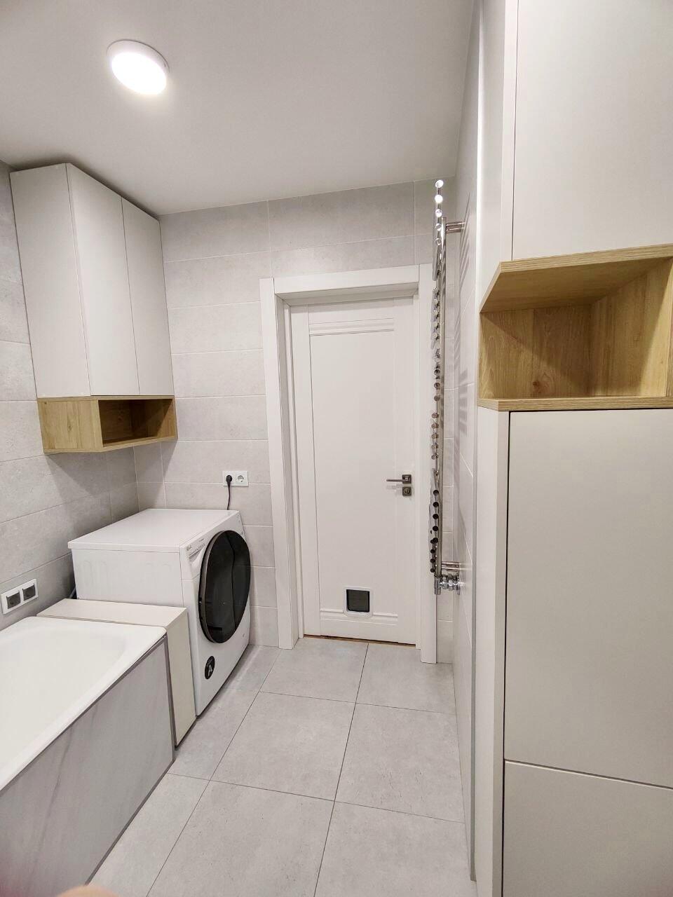 Установлен бойлер для горячей воды (на случай отключения), стирально-сушильная машина LG, загрузка до 12кг, оба санузла оборудованы гигиеническими душами.