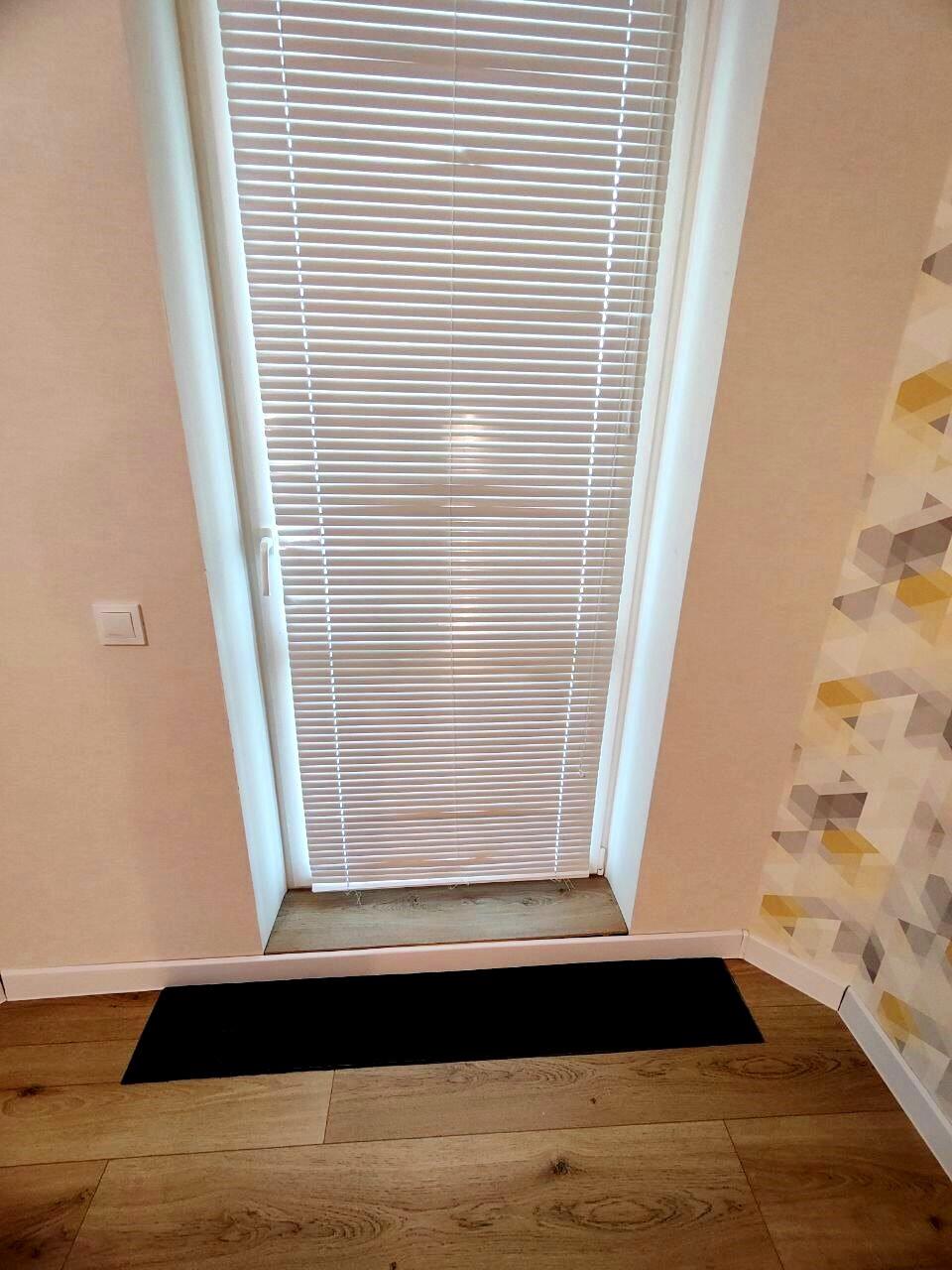 Полы – в комнатах пробковый ламинат, в прихожей, в санузлах, в кухне - керамогранит. На стенах в санузлах керамическая плитка.