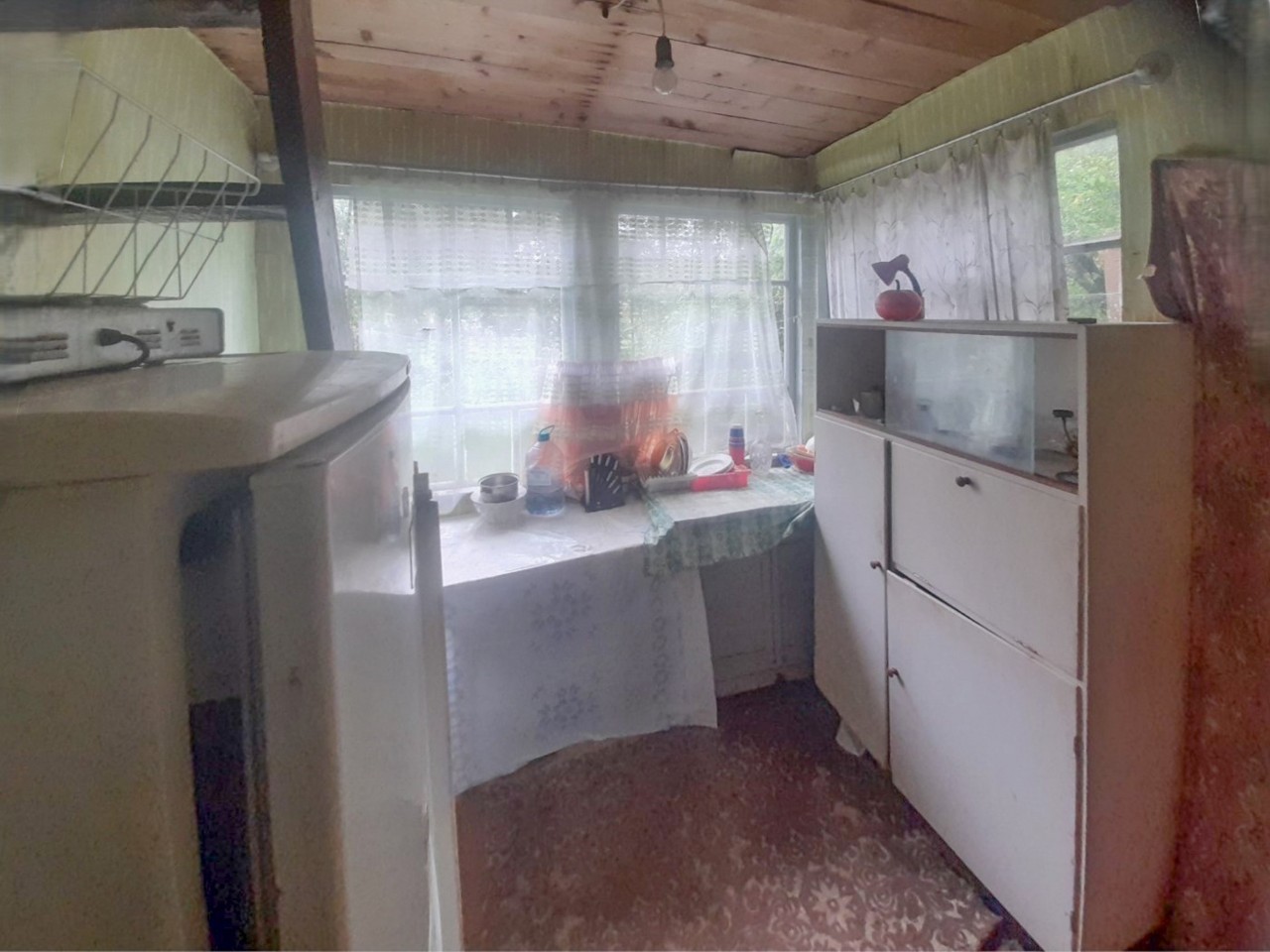 Коммуникации (удобства). Круглогодичное электроснабжение 220В. Центральный водопровод (сезонный), вода заведена в дом. Печное отопление. Есть 2 конфорочная газовая плита + баллон. Уборная на улице.