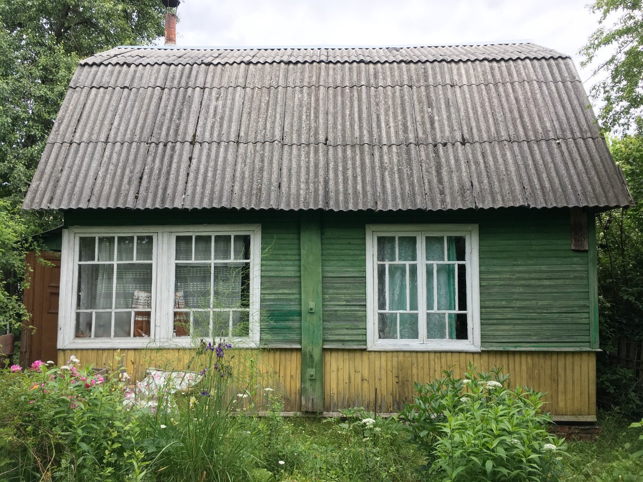 Хороший добротный дом (5.1х6.7), построен из бруса, утеплен, крыша шифер, два уровня. Общая площадь 51.4м2. Площадь жилая 40.8 м2 представлена тремя небольшими комнатами на первом этаже и просторной комнатой на втором. Площадь кухни 6.1м2.