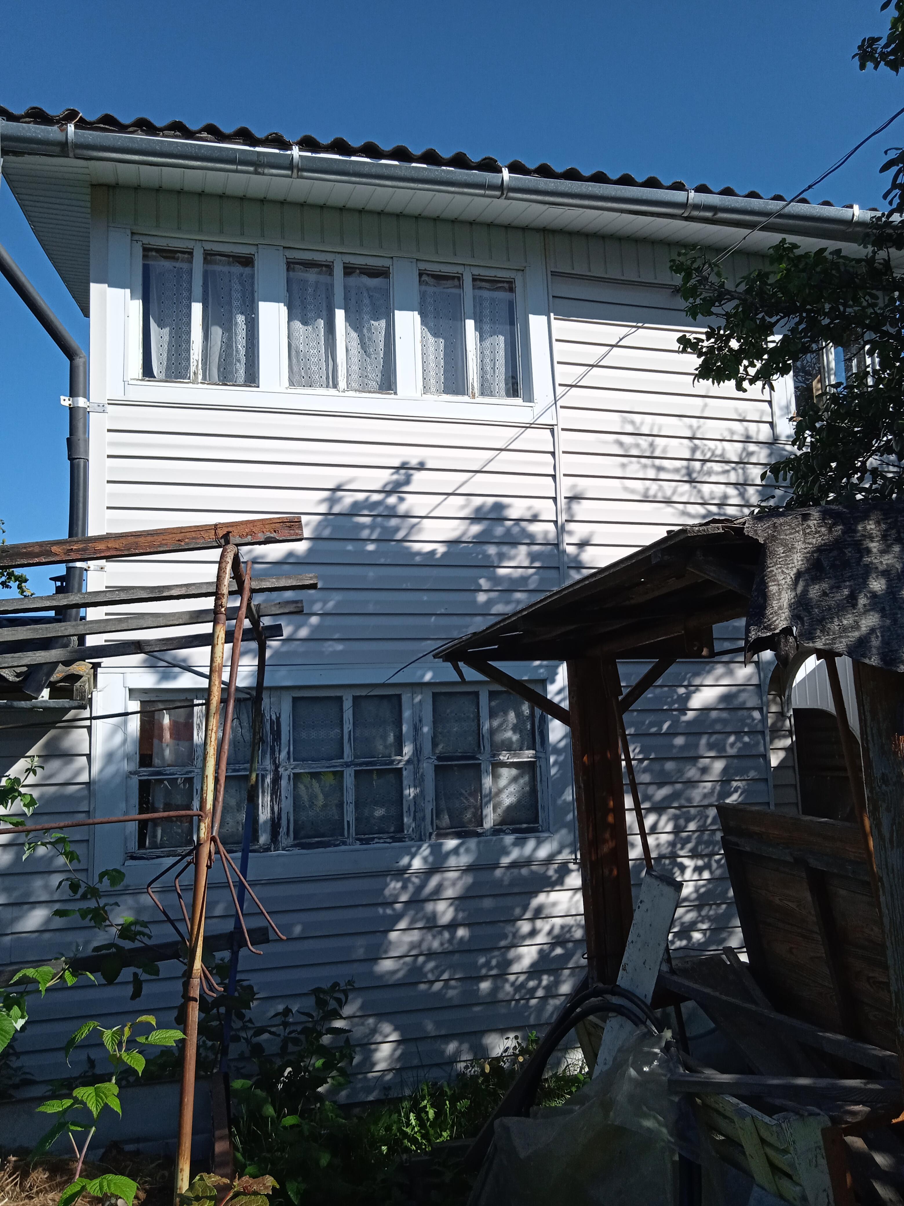 Фундамент бетонный, стены дощатые, обшиты сайдингом. Кровля – шифер, перекрытия деревянные. 1997 год постройки.