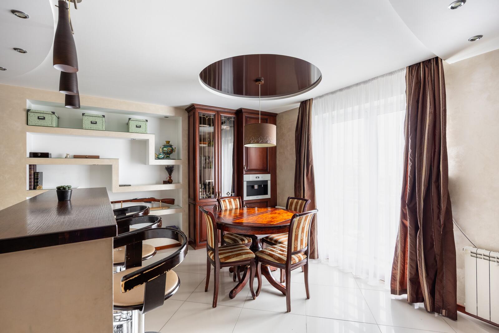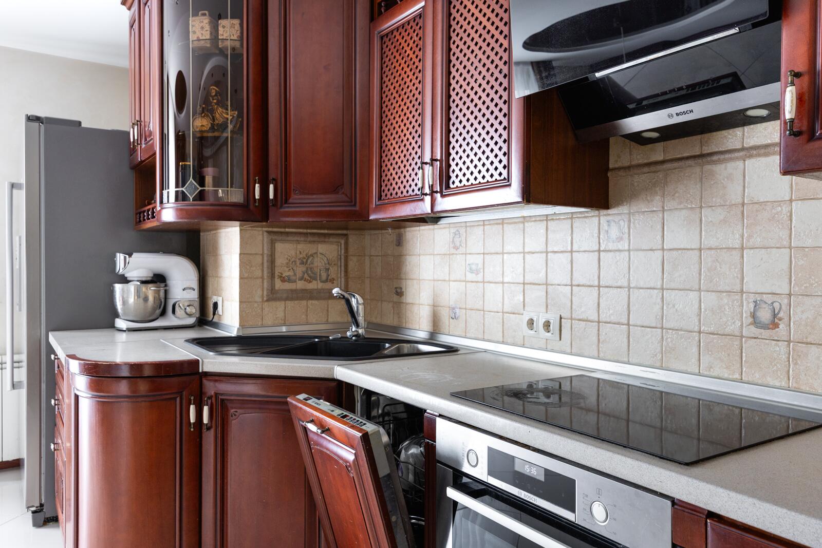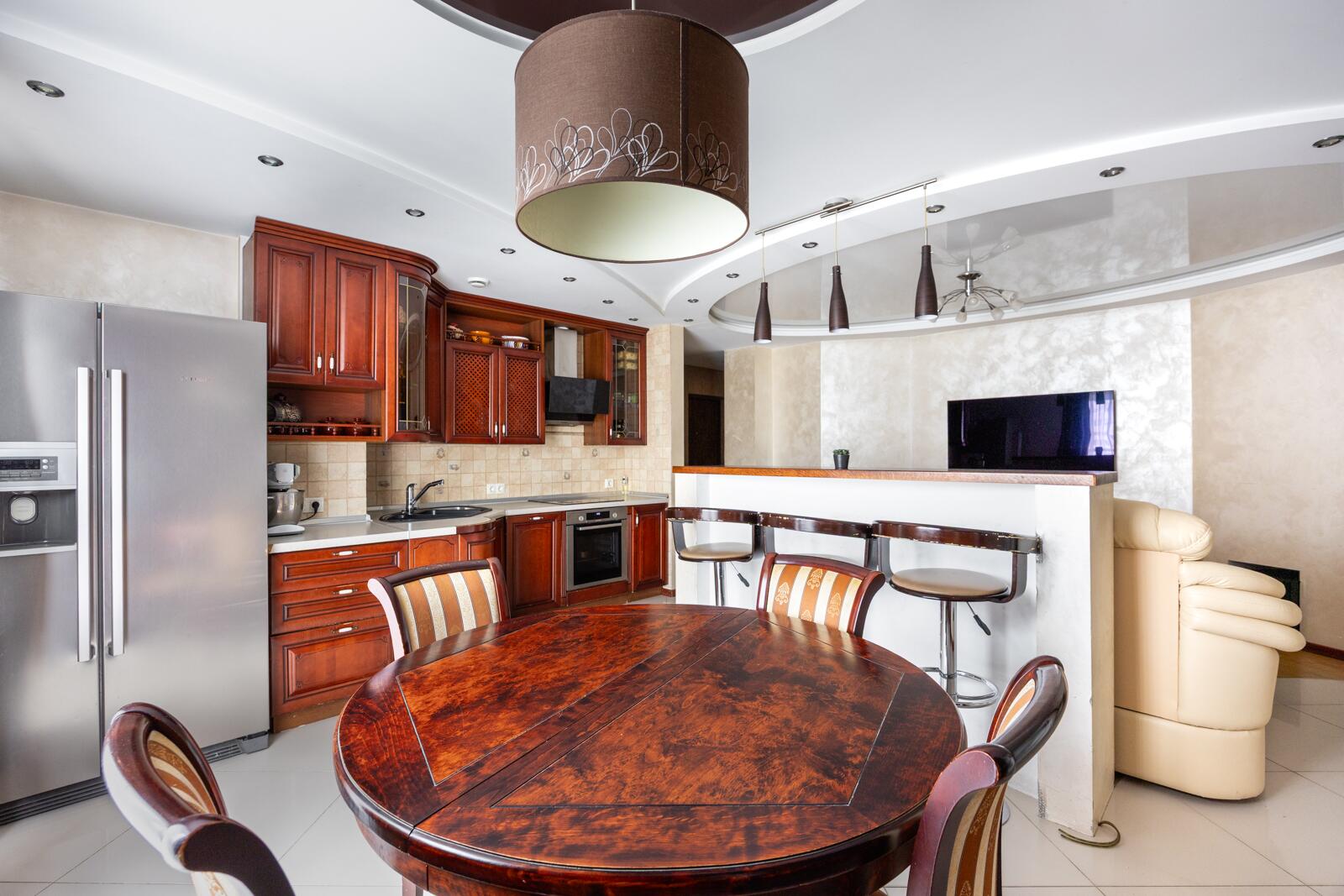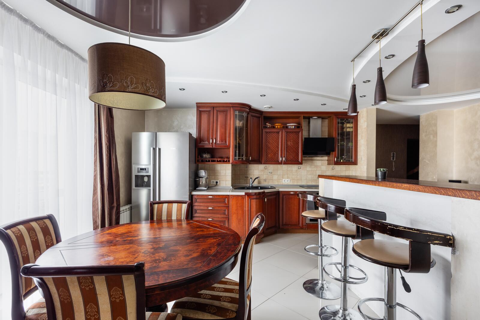 - Просторная кухня 19,6 кв.м. с современным гарнитуром, встроенной бытовой техникой и комфортной рабочей зоной.