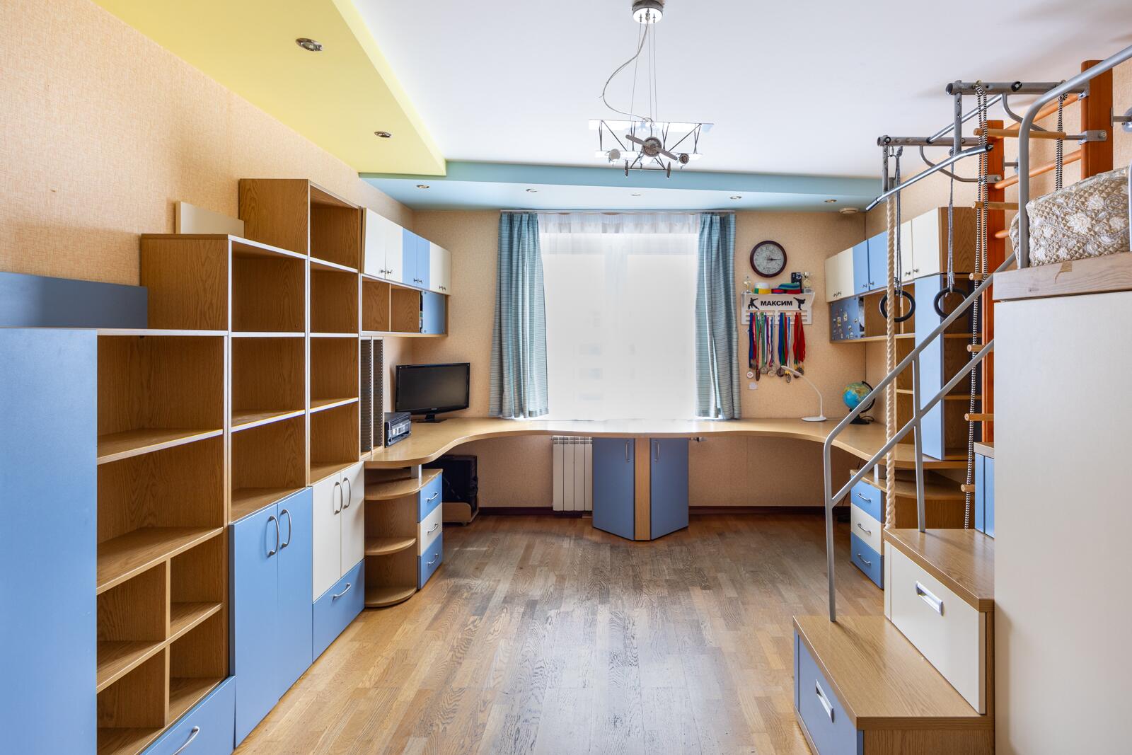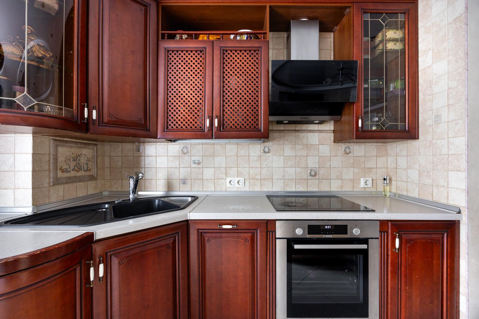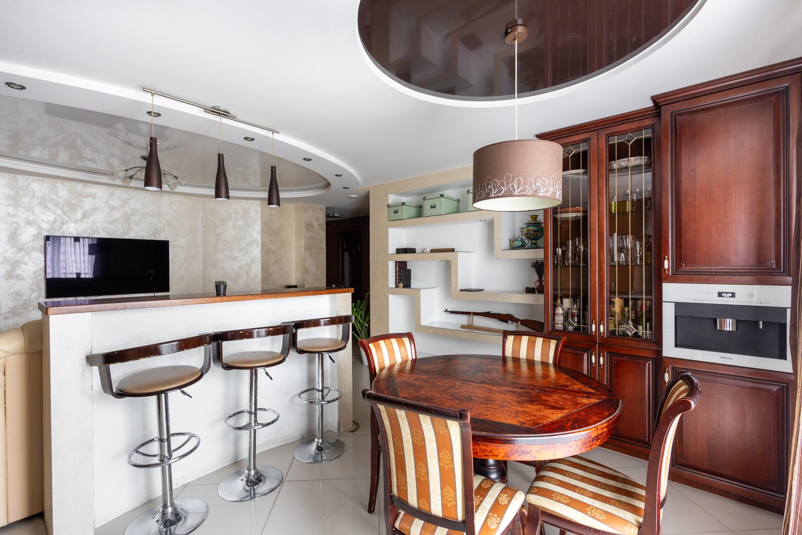 - Просторная кухня 19,6 кв.м. с современным гарнитуром, встроенной бытовой техникой и комфортной рабочей зоной.