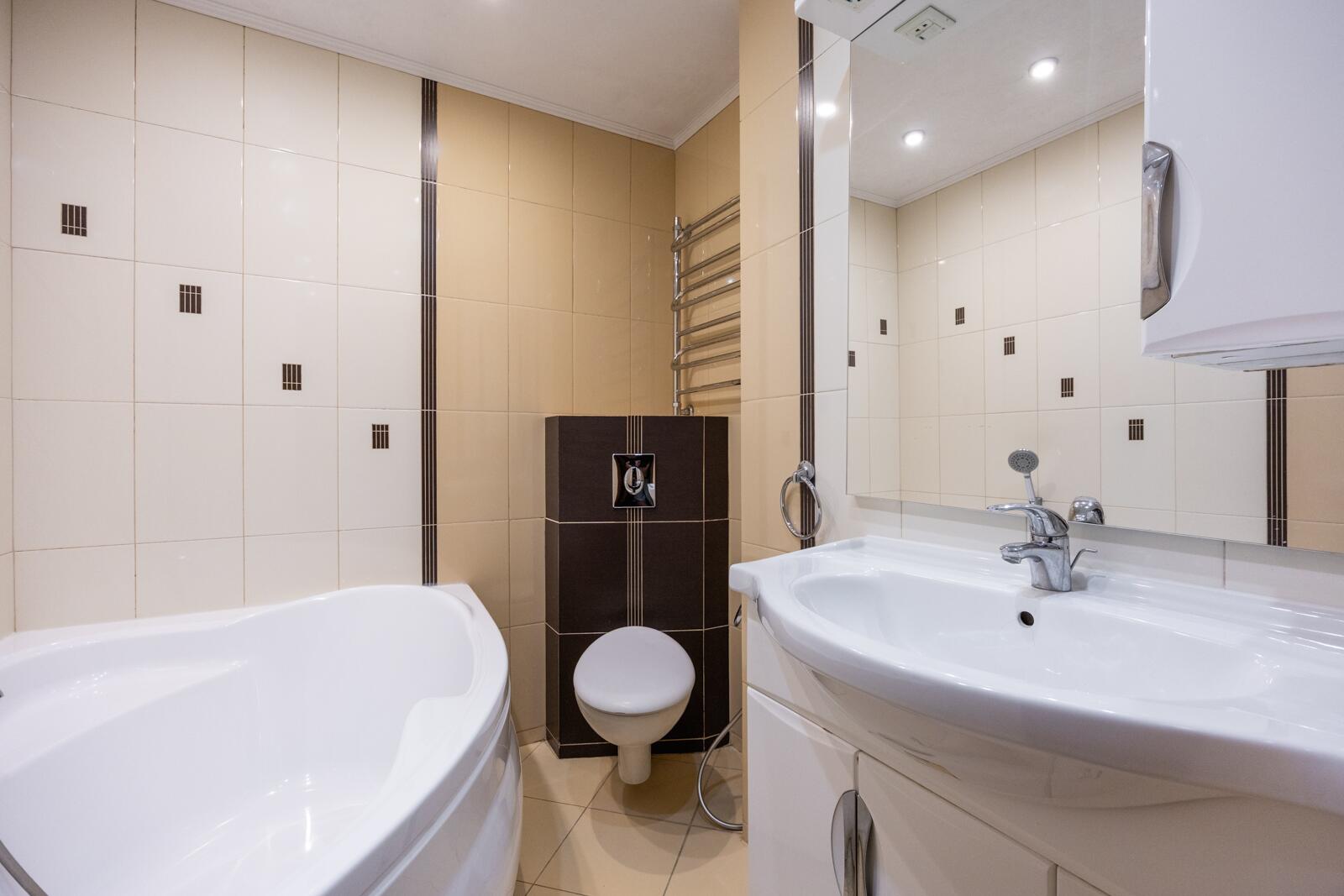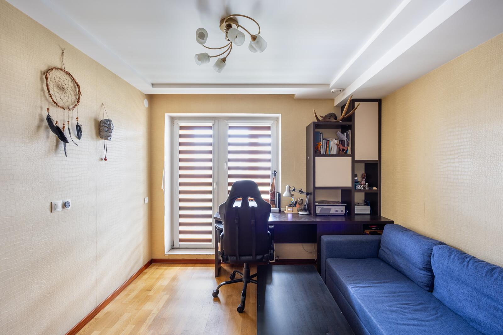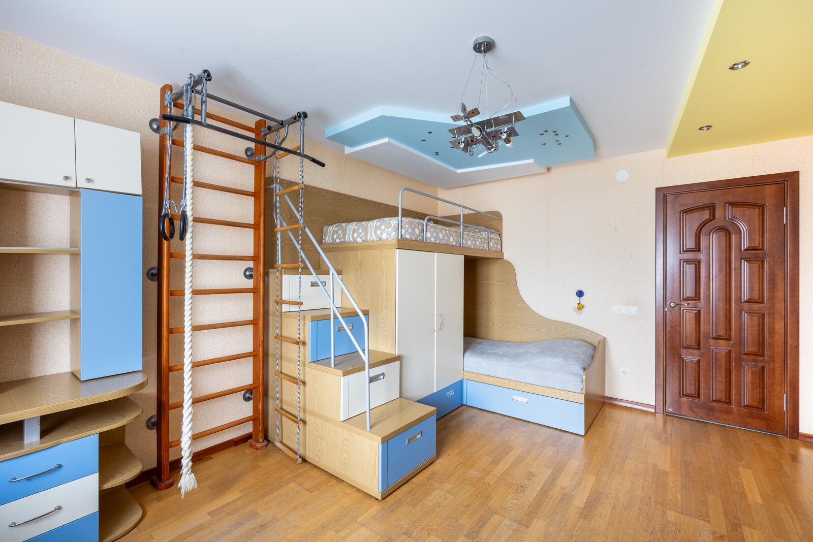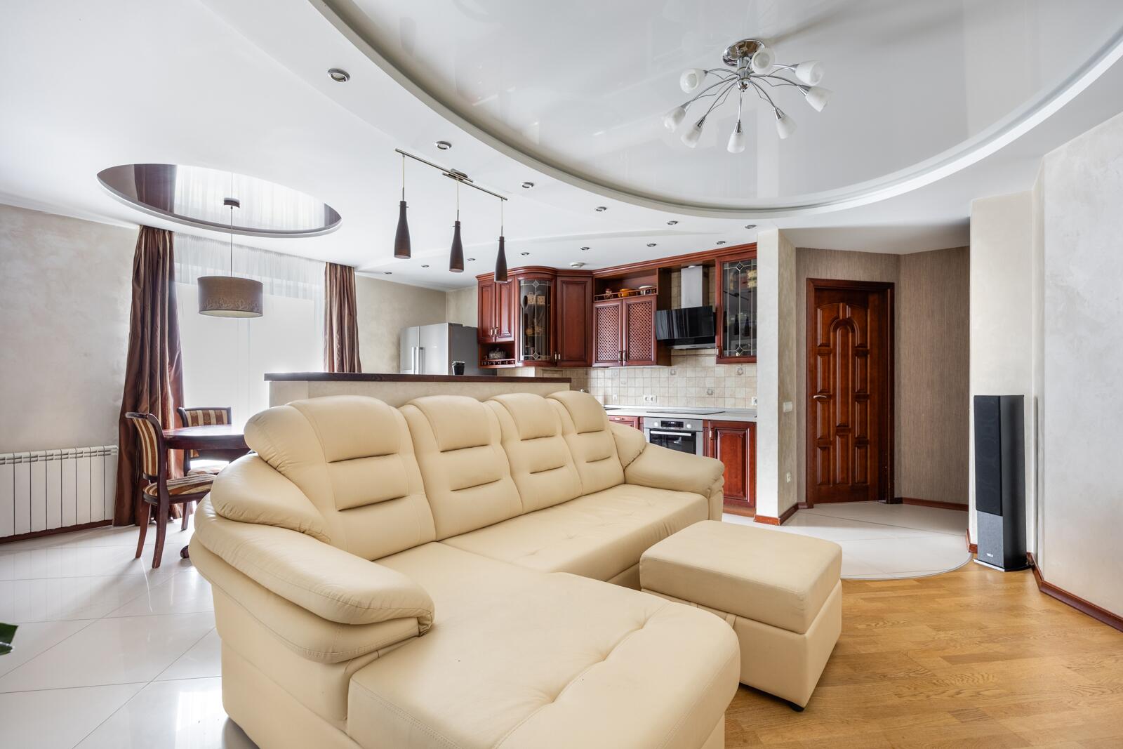 - Просторная кухня 19,6 кв.м. с современным гарнитуром, встроенной бытовой техникой и комфортной рабочей зоной.