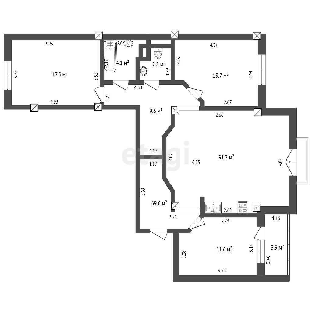 - Общая площадь квартиры составляет 95,5 кв.м., 3 изолированные жилые комнаты 15,5/16,1/20,3 кв.м.