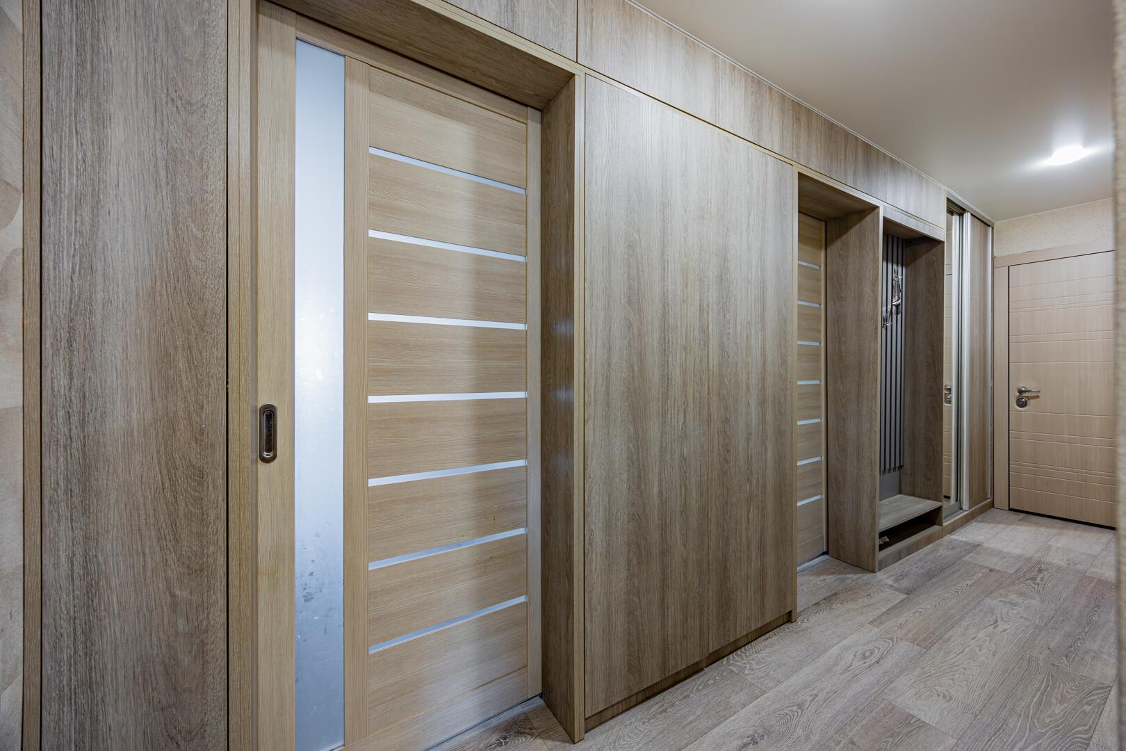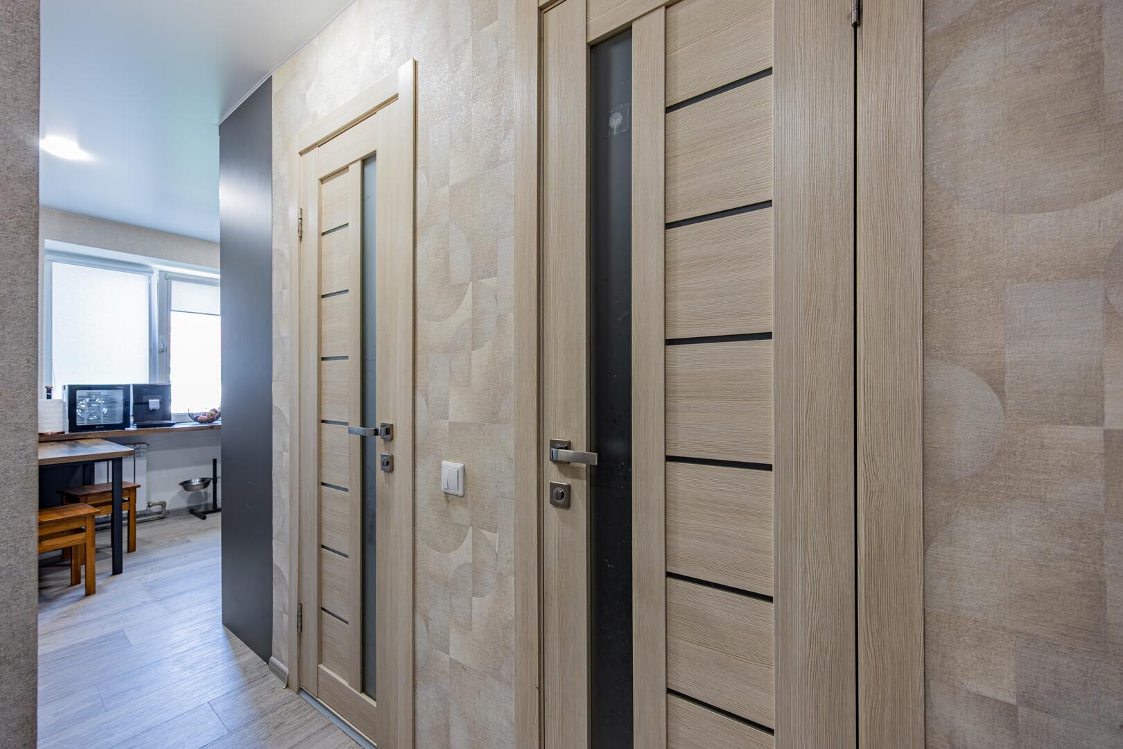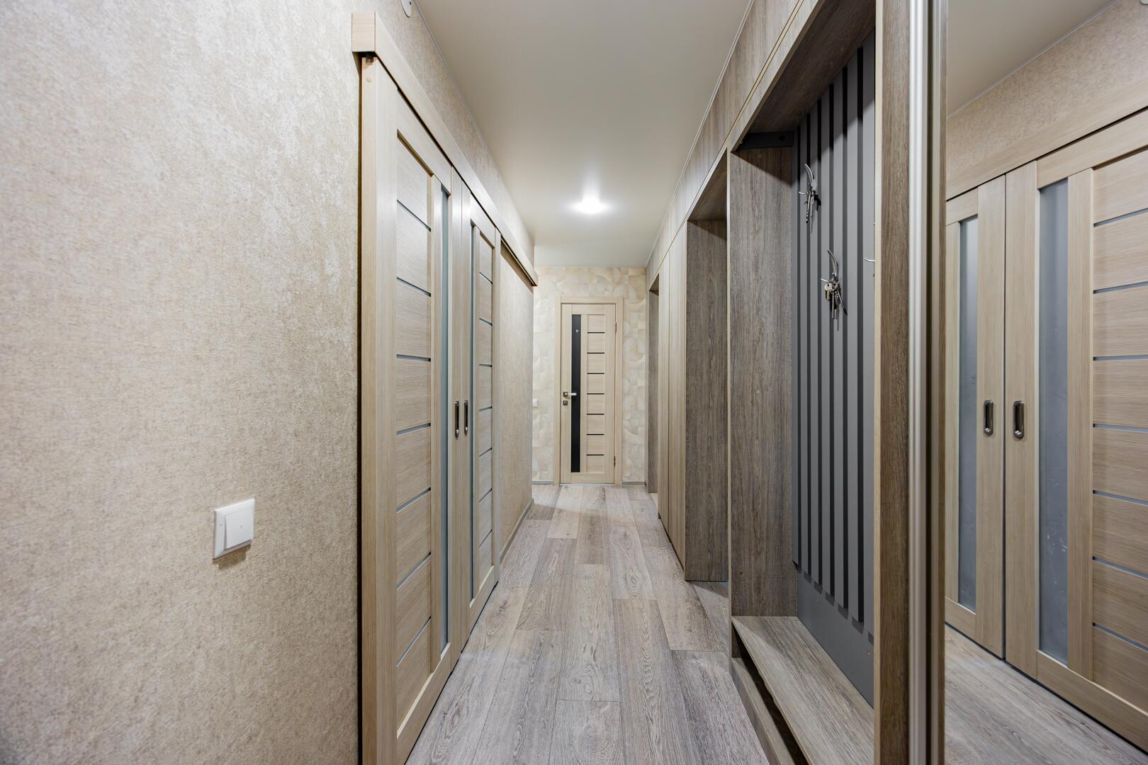 Свежий ремонт: светлый ламинат на полу, современные обои на стенах