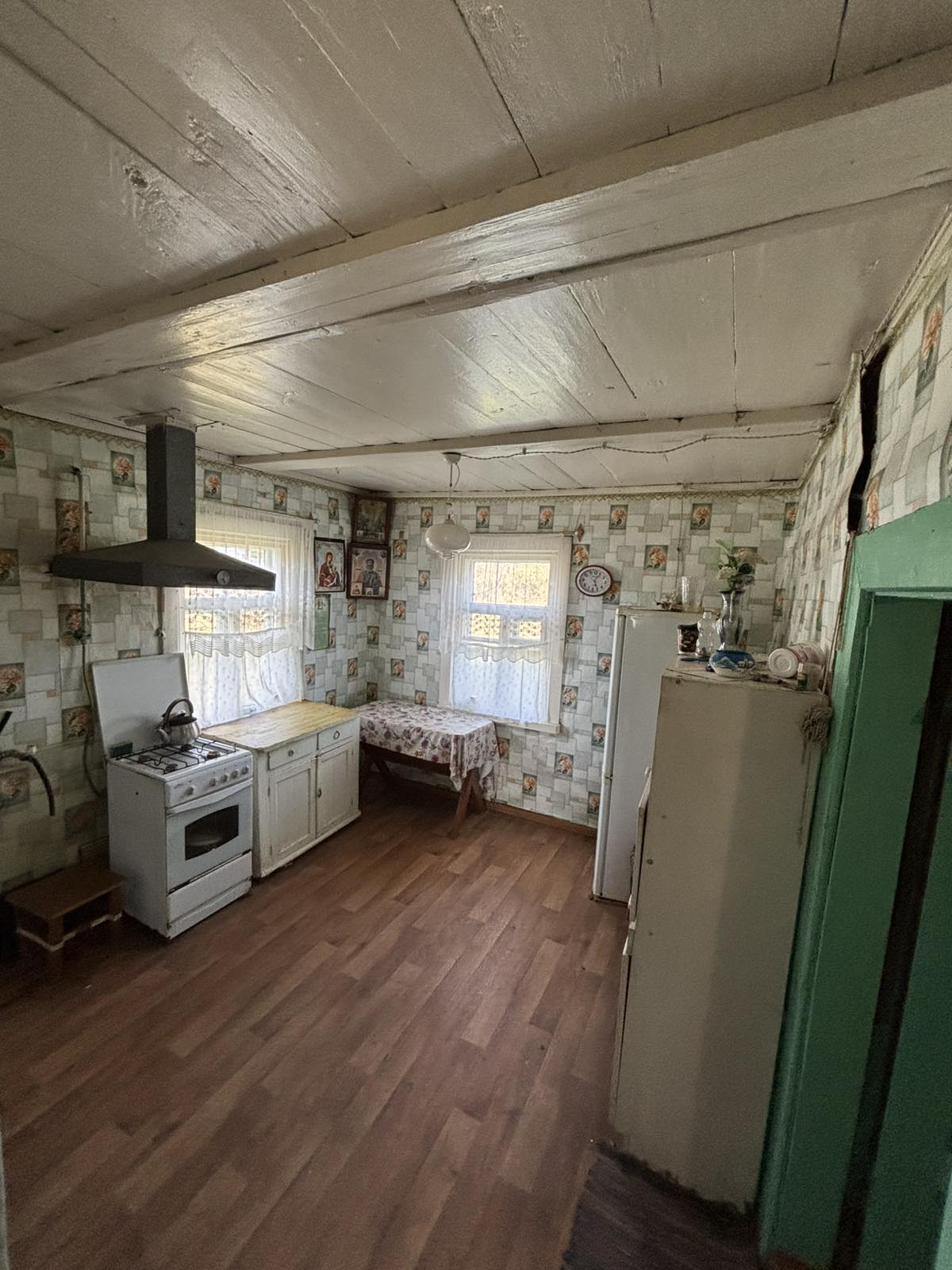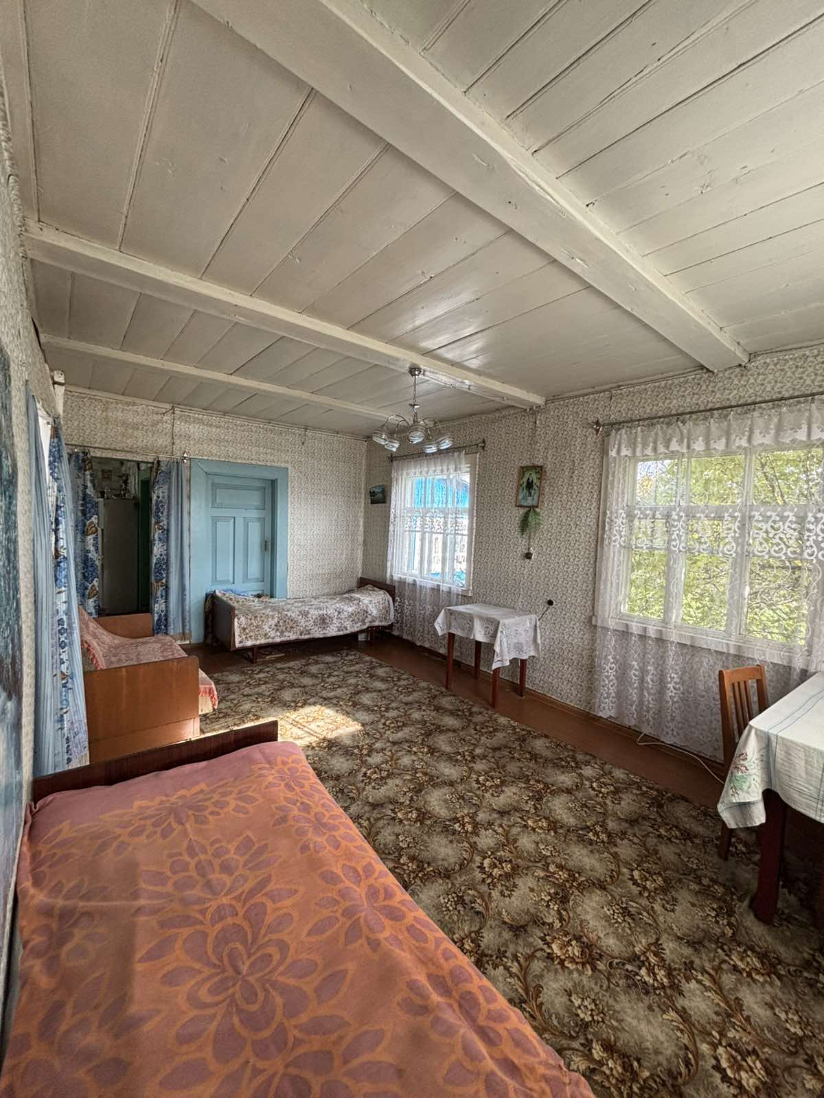 Продается деревянный дом в деревне для круглогодичного проживания или для дачи с участком в 22 сотки (В ПНВ) - расположение - д.Кучкуны Столбцовского района Минской области (58 км от Минска = 30 минут на авто, Брестское направление, 9.5 км от г.Столбцы =10 минут на авто) , 300 м до трассы М1, хорошая подъездная дорога. 200 м от дома расположена остановка маршруток, курсирующих регулярно (каждые 30 минут) на г.Минск, г.Столбцы, г.Несвиж. Расстояние до ж. д. станций "Отцеда" и "Кучкуны", откуда следуют электропоезда сообщением Минск- Брест - 2,5 км. Продаваемый дом крепкий, крыша шиферная. Площадь дома 51,9 кв. м, жилая площадь -30.2 (комнаты 10,4 и 19.8 кв.м., соответственно), кухни - 12 кв. м. В дом проведена вода, а также на улице есть колодец. Проведено электричество, центральный газ, отопление печное (две печи- русская и грубка). Сарай, погреб, прекрасный сад. 250 м до реки Ольховка, где можно немного порыбачить, 700 м до проточного водоёма Яблоновка (ловится щука, окунь и т.д.), вокруг красивые пейзажи, в водоеме обитает прекрасная пара белых лебедей. Неподалеку расположены также сосново-еловые и смешанные леса. Данные места являются очень грибными. А в ближайшем городе Столбцы расположена обширная сеть продуктовых магазинов, кафе, магазины строительных товаров, банки, поликлиника, почта, ФОК, множество школ, гимназия, тренажерный зал и многое другое. Также рядом с городом протекает река Неман, поблизости музей Я. Коласа - родина поэта, турбаза "Высокий берег".