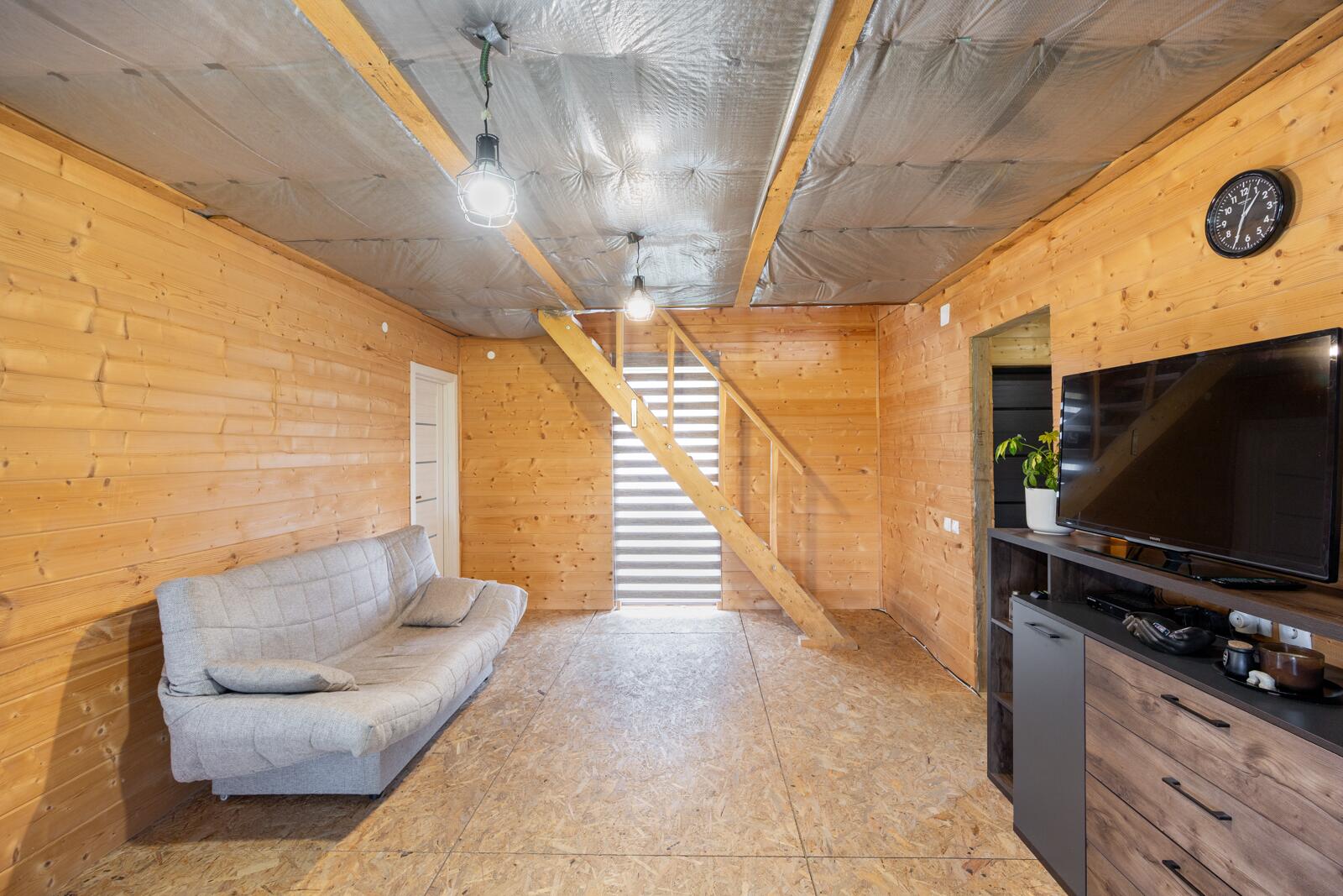 Продаётся уютный дом 97,4 м2 (СНБ) 2019 года постройки с земельным участком 11,67 сотки в СТ «Телепашня» — всего 20 км от МКАД, с удобным выездом на Логойскую и Мядельскую трассы. Асфальтированная дорога до самых ворот — никаких проблем с подъездом в любое время года.