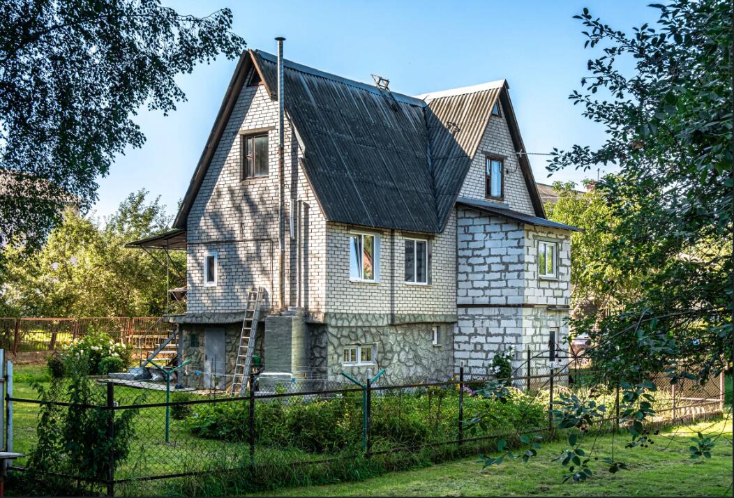 Дом: деревянный сруб, обложен кирпичом + пристройка из газосиликатных блоков, обложена кирпичом. Год постройки дома 1999.