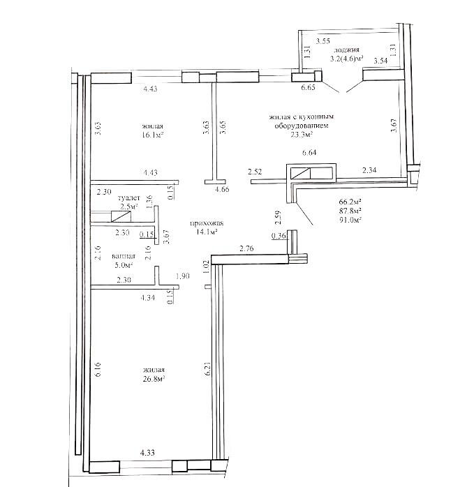 Вашему вниманию представлена трёхкомнатная квартира 2025 года постройки, расположенная в одном из самых благоустроенных и современных районов г.Минска по адресу: г.Минск, ул.Восточная, дом 119. Здесь вас ждут ровные стены, четкие геометрические формы и полная свобода для воплощения любых дизайнерских идей. Квартира располагается на 2 этаже 9-ти этажного жилого дома. Площадь квартиры по СНБ 91,0 м. кв. (общая площадь – 87,8 м.кв.) В квартире есть –2 изолированных жилых комнаты 26,8 м.кв. и 16,1 м.кв., большая кухня совмещённая с жилой комнатой площадью 23,3 м.кв. с выходом на лоджию 4,6 м.кв., прихожая 14,1 м.кв., ванная 5 м.кв., туалет 2,5 м.кв.