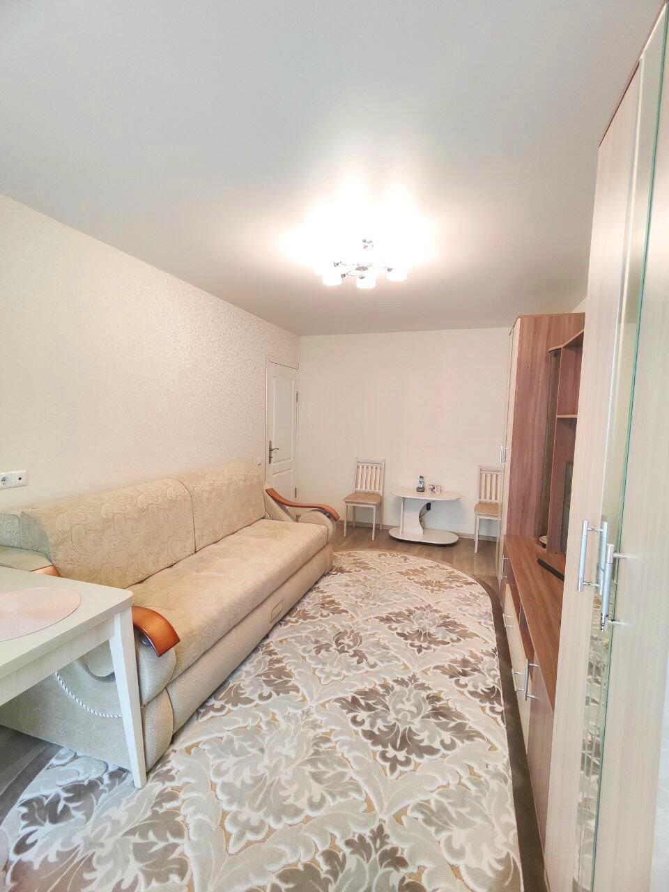 В комнате произведен полный ремонт: выровнены стены, новые обои, на полу -ламинат, потолок натяжной, новая мебель.