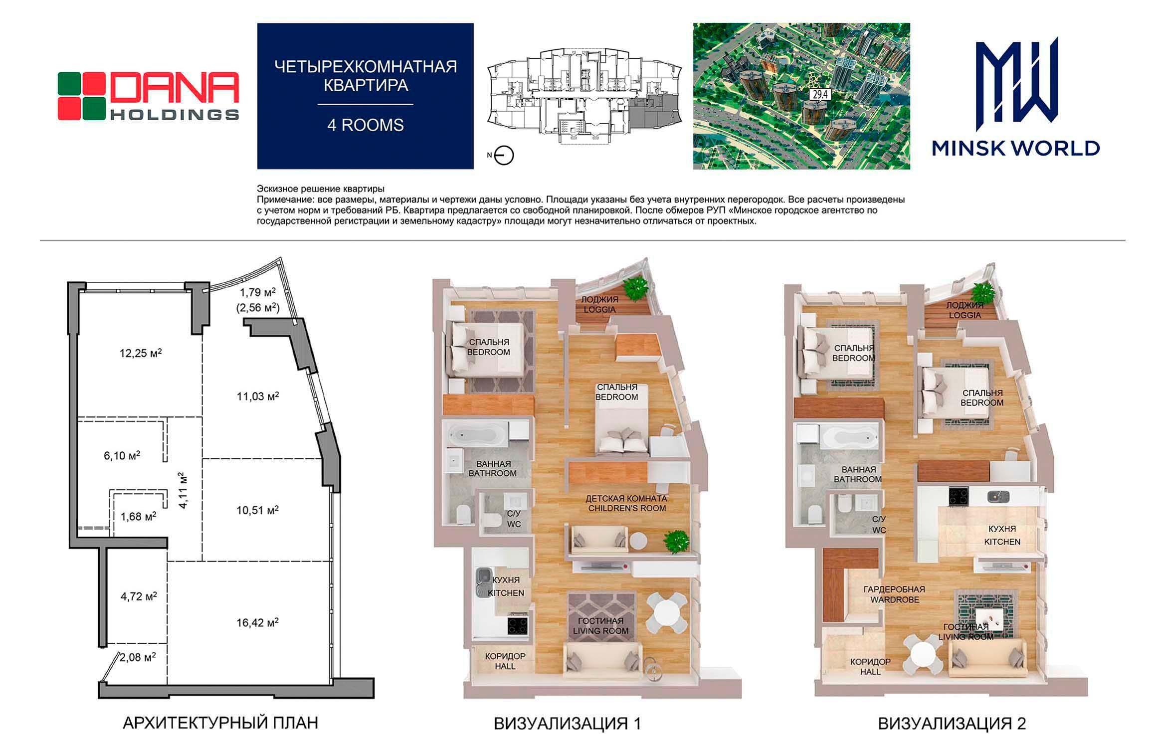Все квартиры ЖК «Минск-Мир» свободной планировки с панорамными окнами и остекленными лоджиями. Благодаря этому вы сможете осуществить любой дизайн-проект и сделать квартиру мечты!