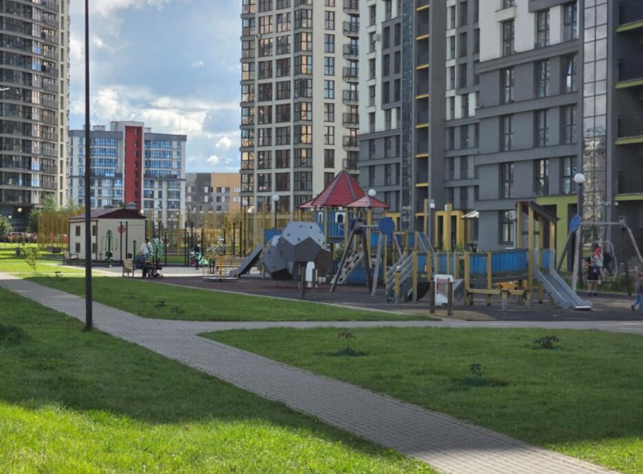 Спортивные площадки, велопарковки и благоустроенные дворы.