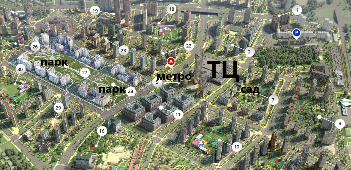 Все дома в комплексе каркасно-блочные, от 10 до 25 этажей.