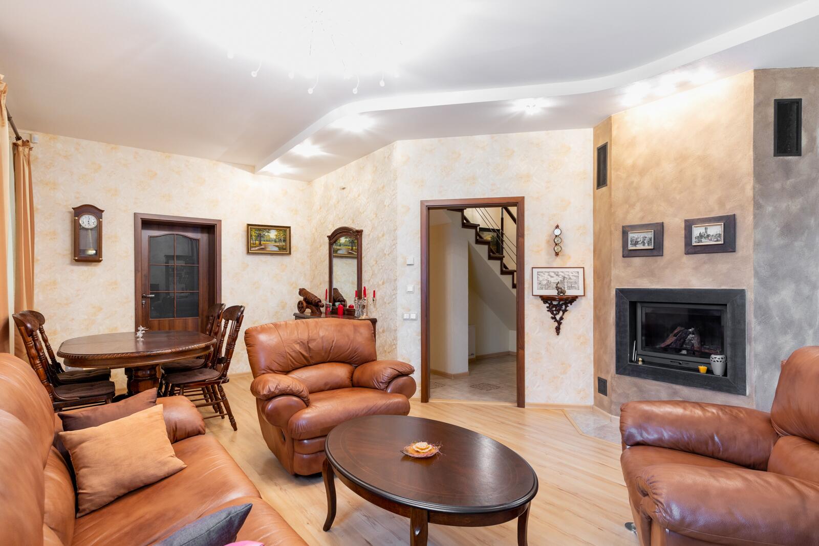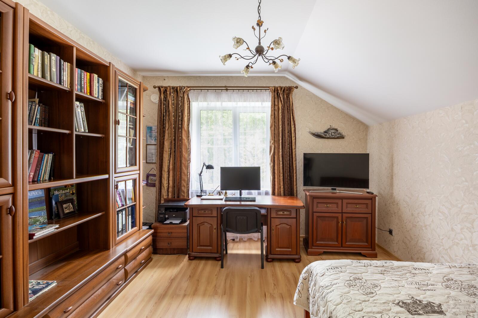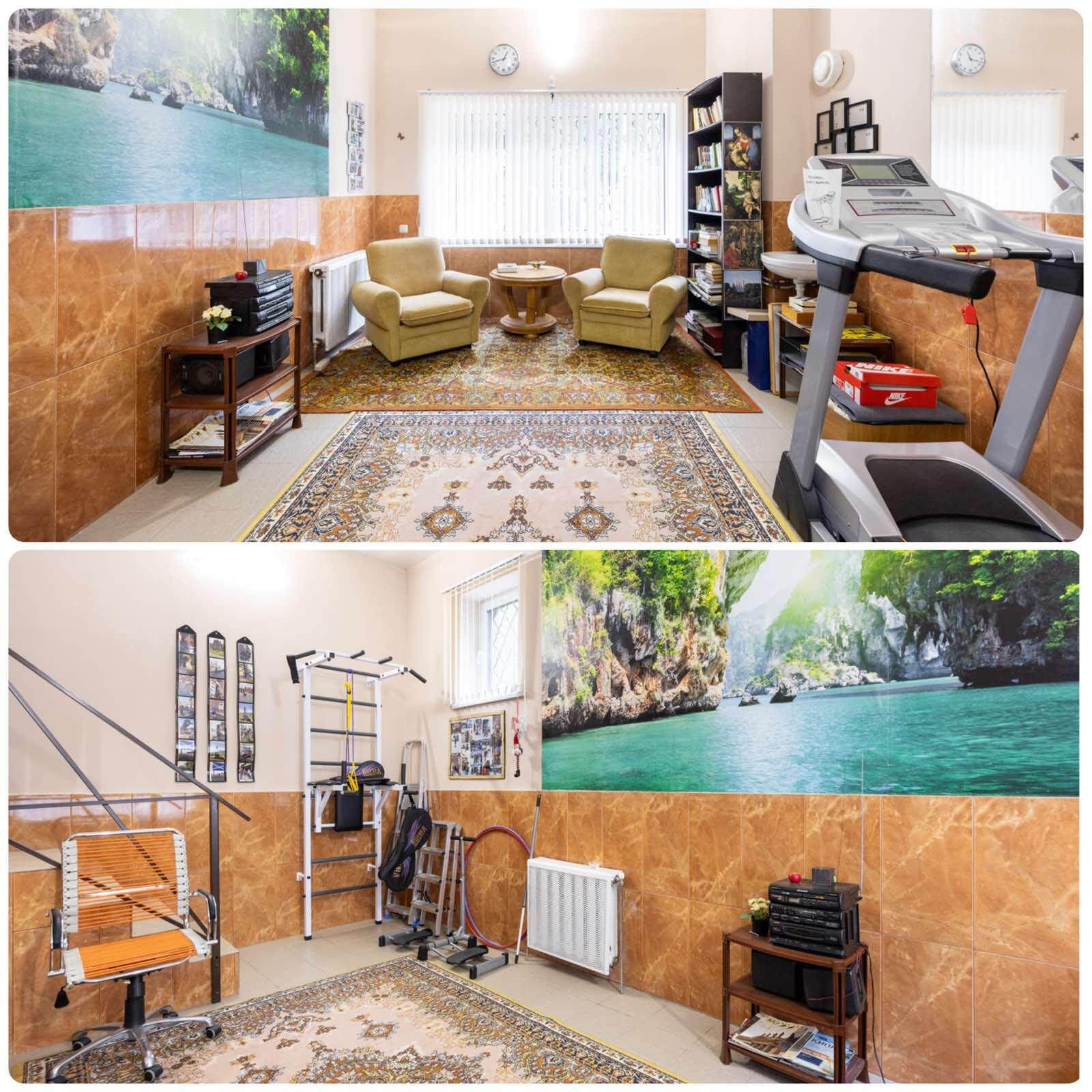Гостиная (28,7 м2)Просторная, светлая, с большими окнами, которые наполняют дом солнцем. Камин создаёт атмосферу уюта для семейных вечеров и приёма гостей. Здесь уже есть удобная кожаная мебель, раскладной стол из массива, рассчитанный на большую компанию. Кухня (10,7 м2)Полностью оборудована: холодильник, варочная поверхность, духовка, посудомоечная машина Bosch, кофемашина Delonghi и даже мелкая техника (комбайн Kenwood, вытяжка Elikor). Всё остаётся новым хозяевам! Продуманная эргономика и вместительные шкафы позволяют готовить с комфортом. Спортивный зал (21,9 м2)Уже укомплектован беговой дорожкой и тренажёрами. Пространство легко трансформируется — можно сделать кабинет, гостевую спальню или детскую игровую. Санузел с душевой кабиной — для удобства на первом этаже. Закрытая терраса — место для уютных вечеров или летних завтраков на свежем воздухе. Второй этаж — зона отдыха и приватности