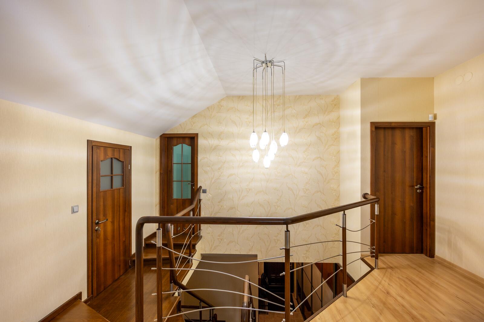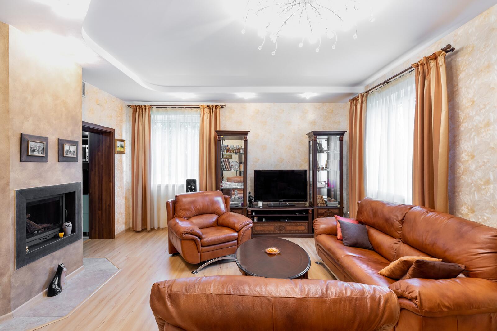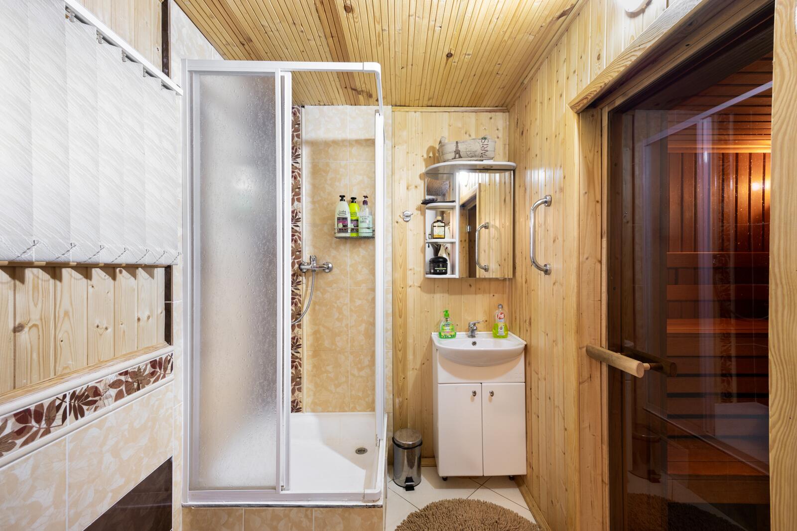 Гостиная (28,7 м2)Просторная, светлая, с большими окнами, которые наполняют дом солнцем. Камин создаёт атмосферу уюта для семейных вечеров и приёма гостей. Здесь уже есть удобная кожаная мебель, раскладной стол из массива, рассчитанный на большую компанию. Кухня (10,7 м2)Полностью оборудована: холодильник, варочная поверхность, духовка, посудомоечная машина Bosch, кофемашина Delonghi и даже мелкая техника (комбайн Kenwood, вытяжка Elikor). Всё остаётся новым хозяевам! Продуманная эргономика и вместительные шкафы позволяют готовить с комфортом. Спортивный зал (21,9 м2)Уже укомплектован беговой дорожкой и тренажёрами. Пространство легко трансформируется — можно сделать кабинет, гостевую спальню или детскую игровую. Санузел с душевой кабиной — для удобства на первом этаже. Закрытая терраса — место для уютных вечеров или летних завтраков на свежем воздухе. Второй этаж — зона отдыха и приватности