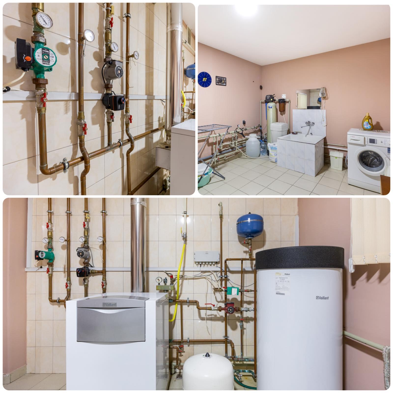 Кладовые — для продуктов, заготовок и инвентаря. Топочная и котельная с немецким оборудованием Vaillant. Прачечная с техникой Bosch, обувная зона, шкаф-купе для сезонных вещей. Всё облицовано плиткой, утеплено и защищено от влаги. Качество строительства