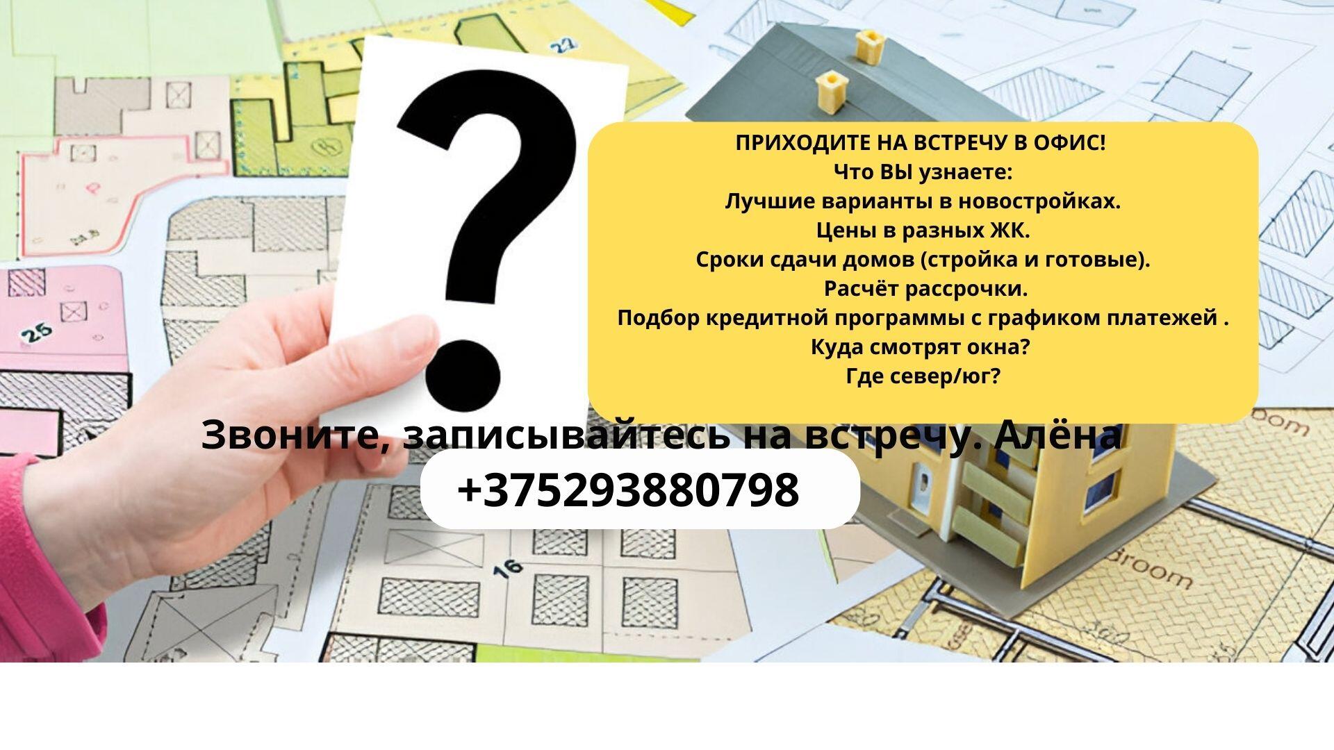 Квартиры напрямую от застройщика, по ценам застройщика, без комиссий агентству Б Е С П Л А Т Н О консультации и помощь в покупке! Квартиру можно приобрести в кредит (до 20 лет в рублях) или в рассрочку до 48 (без справок и поручителей). Б Е С П Л А Т Н О проконсультирую и помогу выбрать наиболее выгодный вариант! Помогу выбрать нужную Вам планировку и лучший вид из окна в любом доме Минск-Мир!...