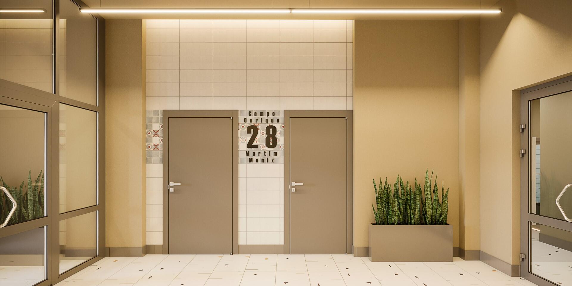 На первом этаже располагается лобби с уникальным дизайном и место для консьержа.