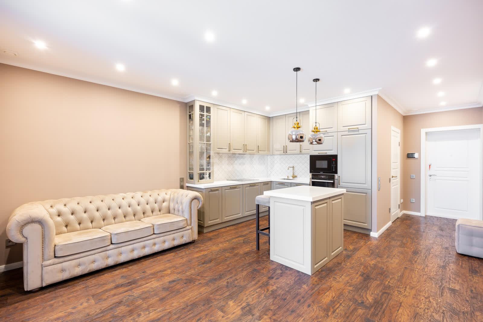 · Просторная кухня-гостиная с островом и зонами отдыха.